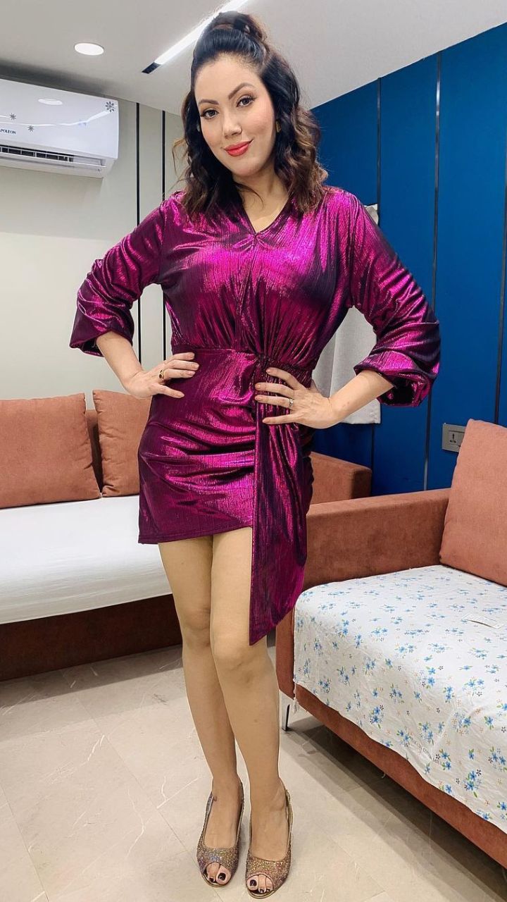 शिमरी ड्रेस में मुनमुन दत्ता बेहद सुंदर लग रही हैं। उनकी यह हाई थाई स्लिट ड्रेस पार्टी का लिए परफेक्ट हैं।