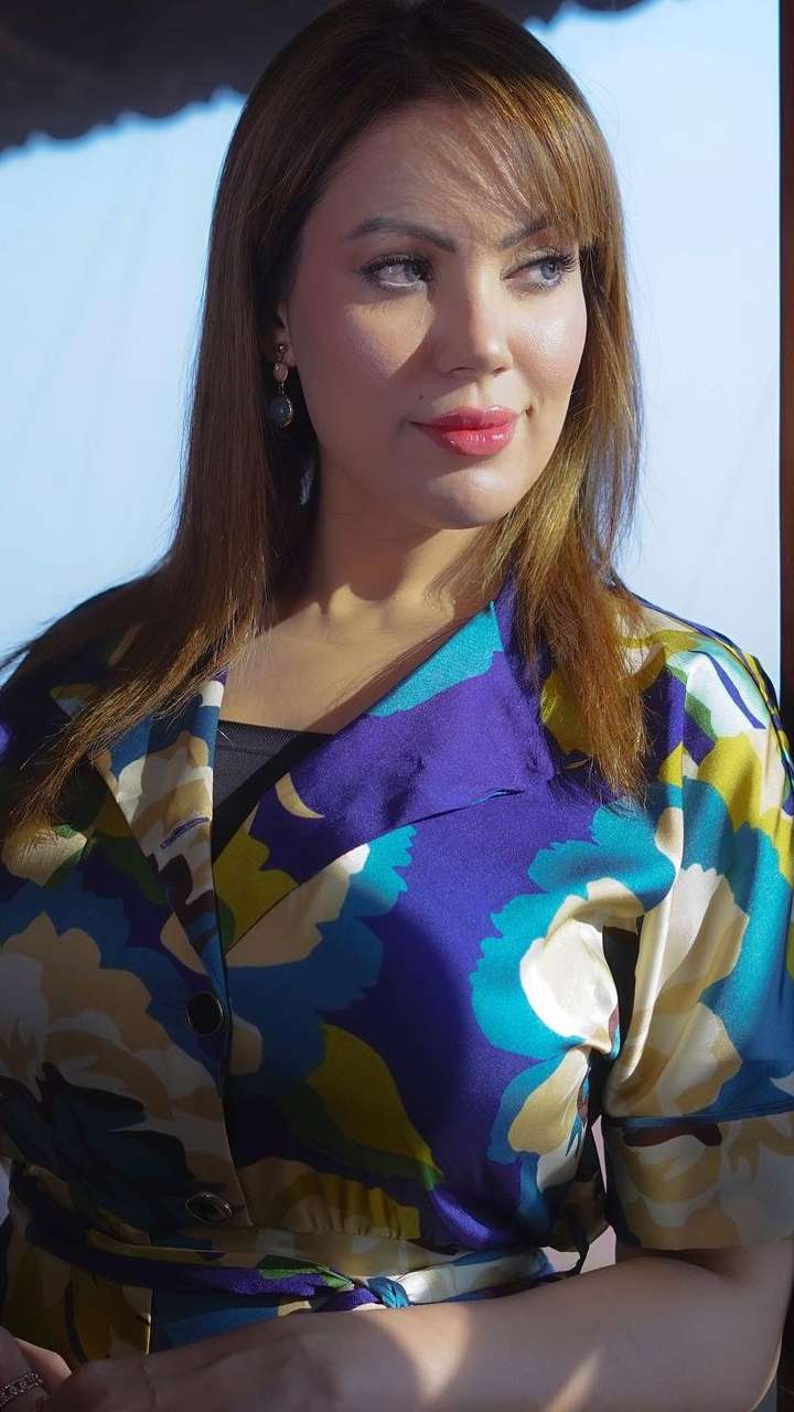 तस्वीर में कलरफुल ड्रेस पहने ग्लॉसी लिपस्टिक लगाए मुनमुन पोज देती हुई बेहद स्टनिंग लग रही हैं।