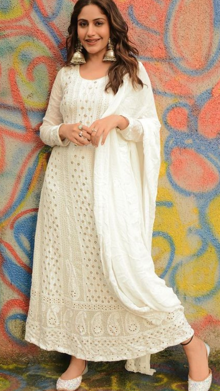 सुरभि इस व्हाइट अनारकली सूट में बला की खूबसूरत लग रही हैं।