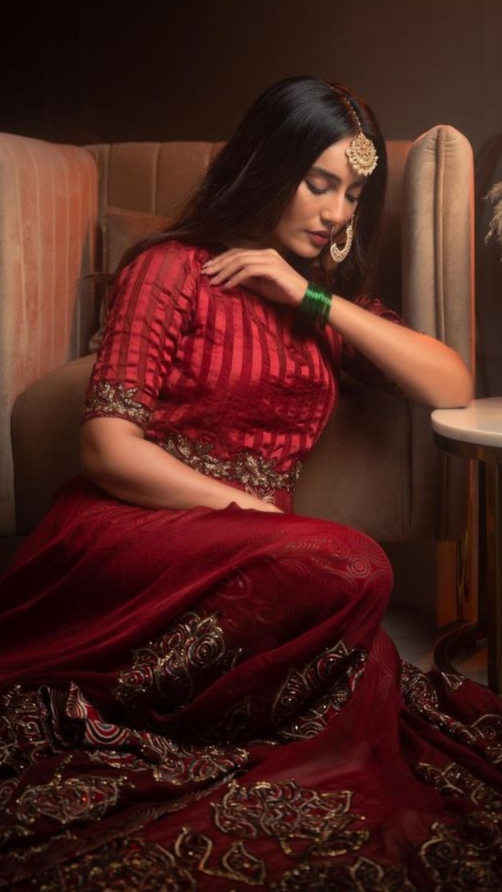 टीवी एक्ट्रेस सुरभि ज्योति की इस रेड इंडियन ऑउटफिट में कातिलाना अदाएं फैंस के दिलों पर राज कर रही हैं।