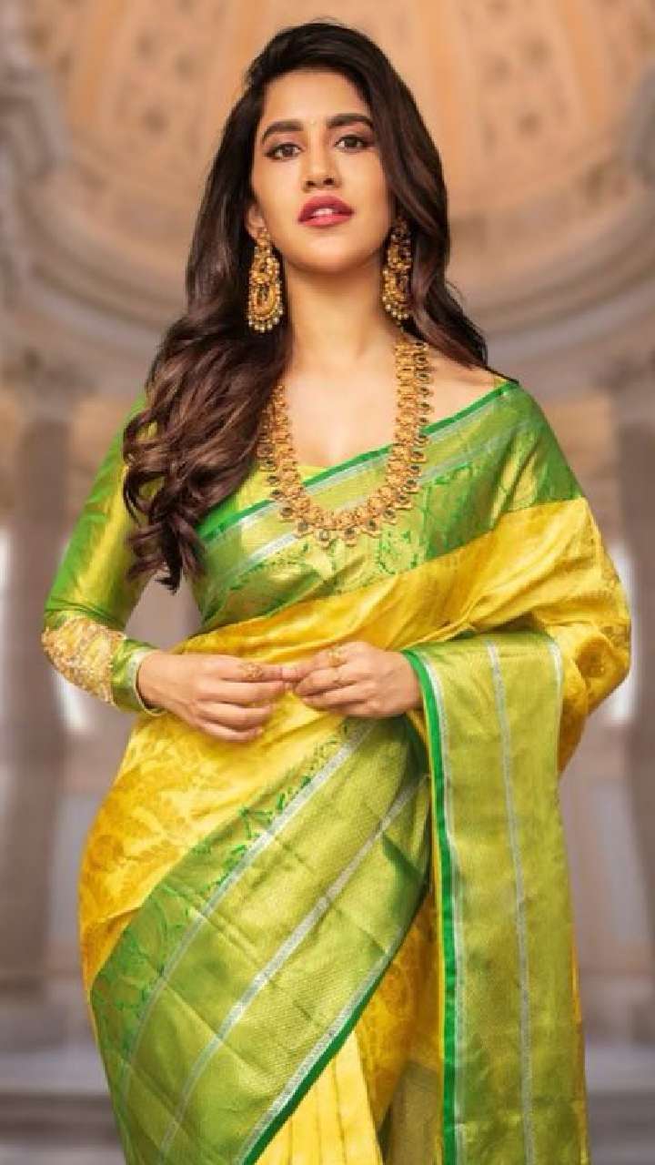 घर के किसी फंक्शन में रॉयल लुक पाना चाहती हैं, तो नाभा के इस लुक को कॉपी करना न भूलें। उन्होंने सिल्क साड़ी के साथ फुल स्लीव्स ब्लाउज पेयर किया है, जो उनके क्लासी और रॉयल दिखने में मदद कर रहा है।