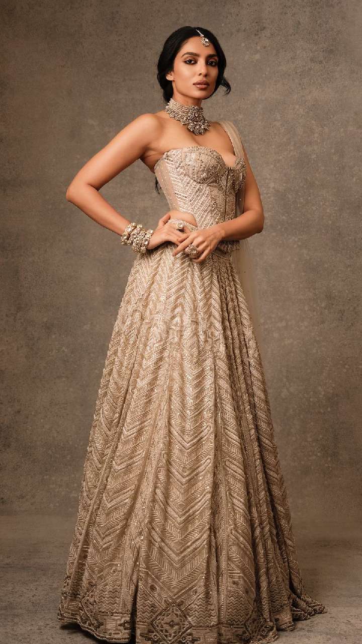 डीवा ऑरेंज कलर के बनारसी लहंगे ऑफ शोल्डर चोली और गोल्डन ज्वैलरी में अप्सरा लग रही हैं। आप भी उनके इस लुक कॉपी कर सकते हैं।
