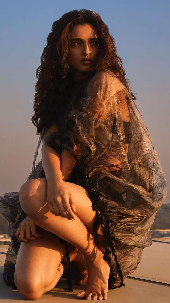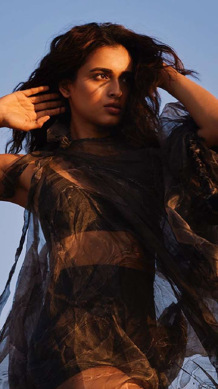तस्वीर में नम्रता ने ब्लैक कलर की ब्रालेट और मिनी स्कर्ट पहन खुद को ब्लैक ट्रांसपेरेंट क्लॉथ से कवर किया हुआ हैं।