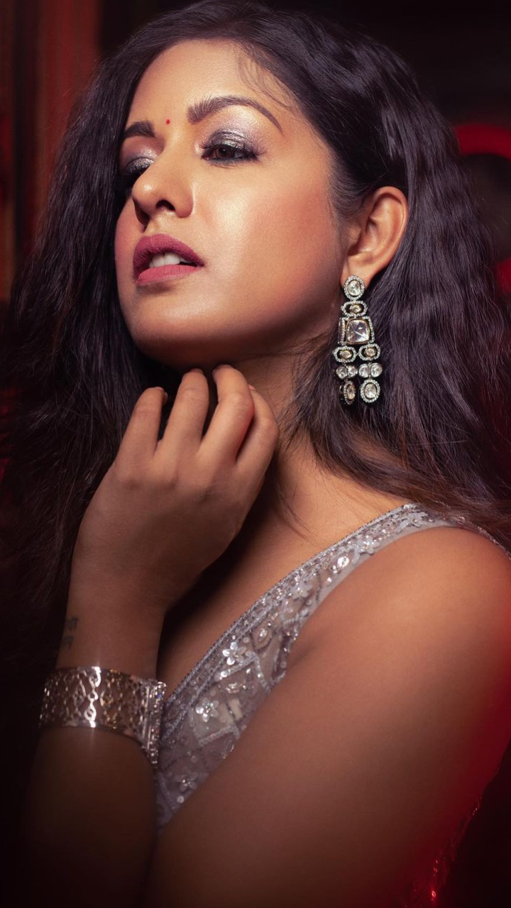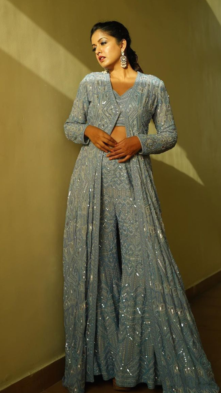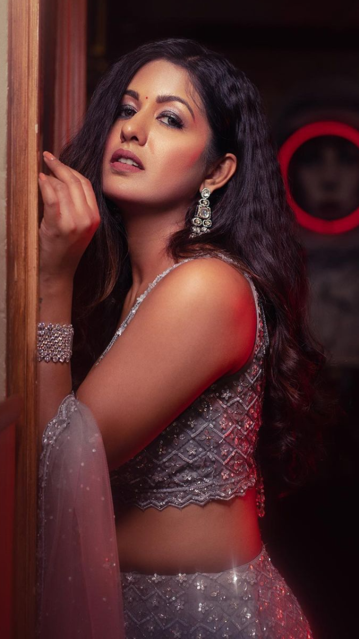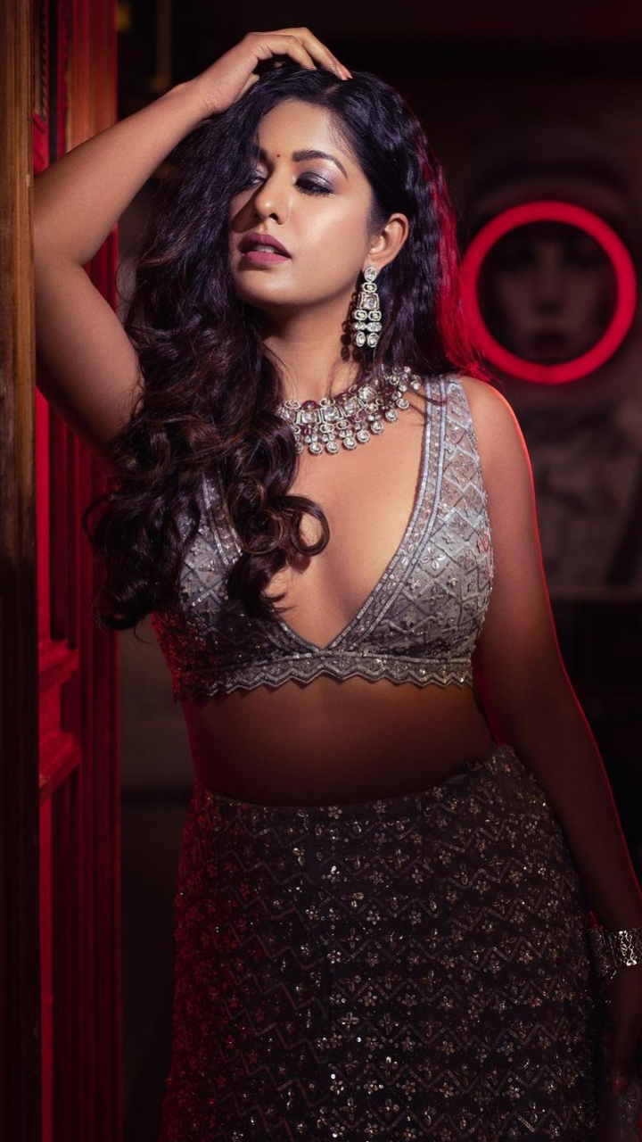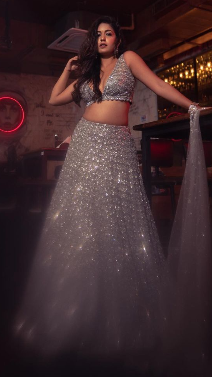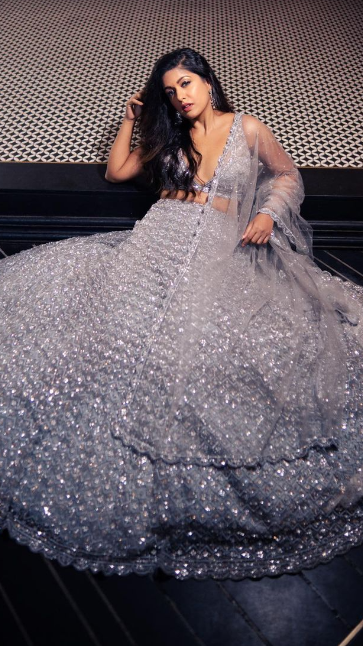 एक्ट्रेस सिल्वर वर्क वाले ग्रे लहंगे में कयामत ढहा रही हैं।