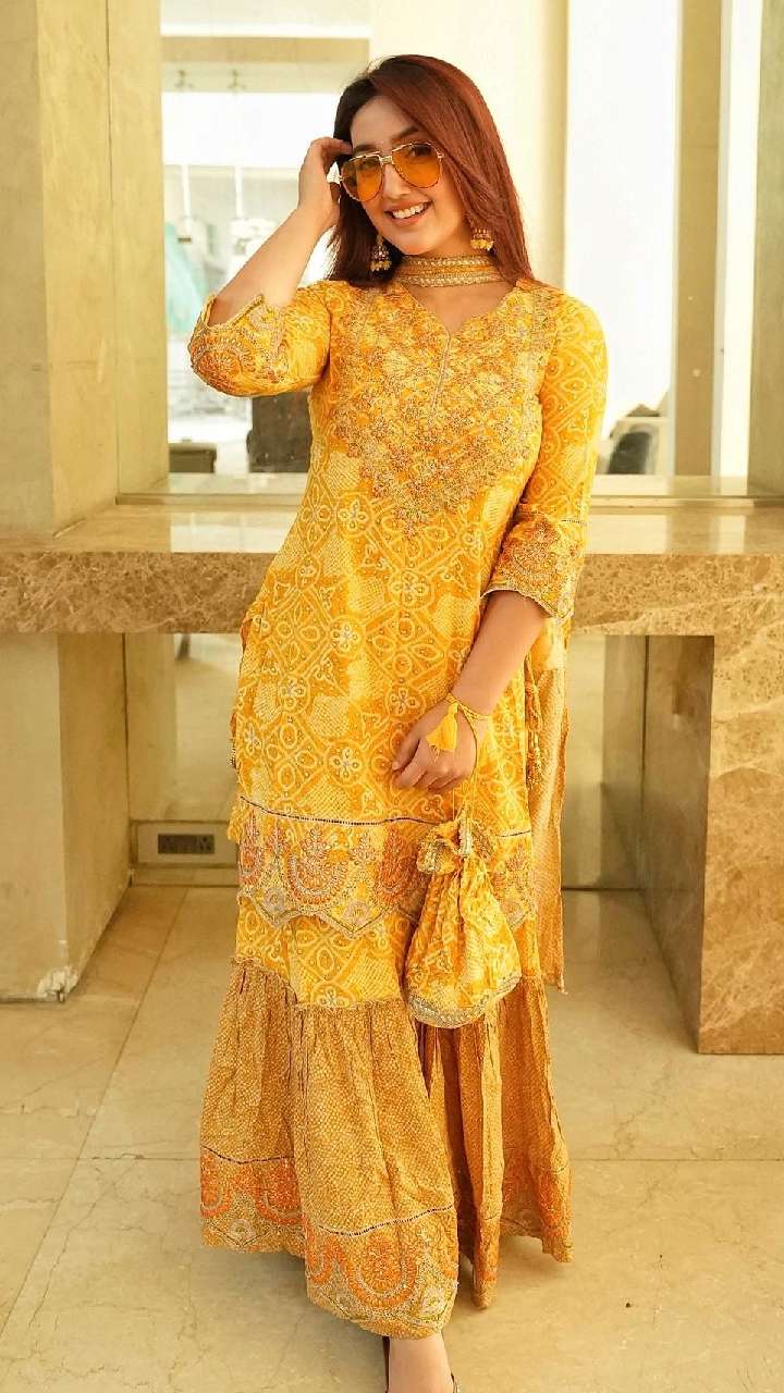 डीवा का चुंदरी प्रिंट येलो सूट दुर्गा पूजा के लिए बेस्ट रहेगा। चुंदरी प्रिंट और पीला रंग दोनों माता को बेहद पसंद है।