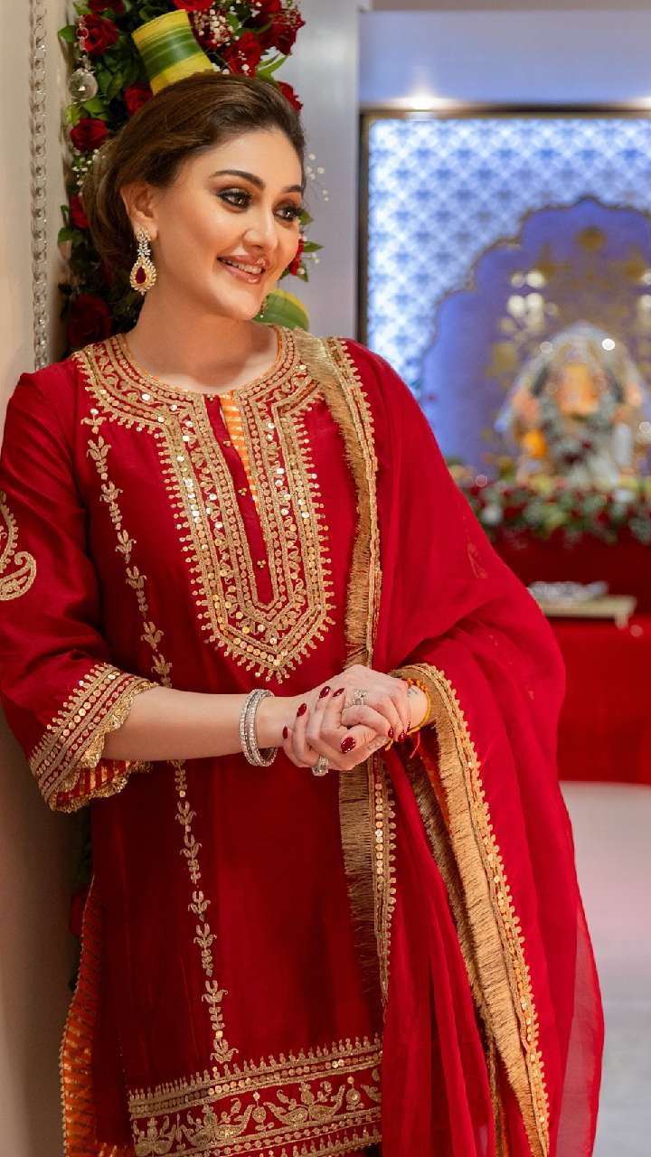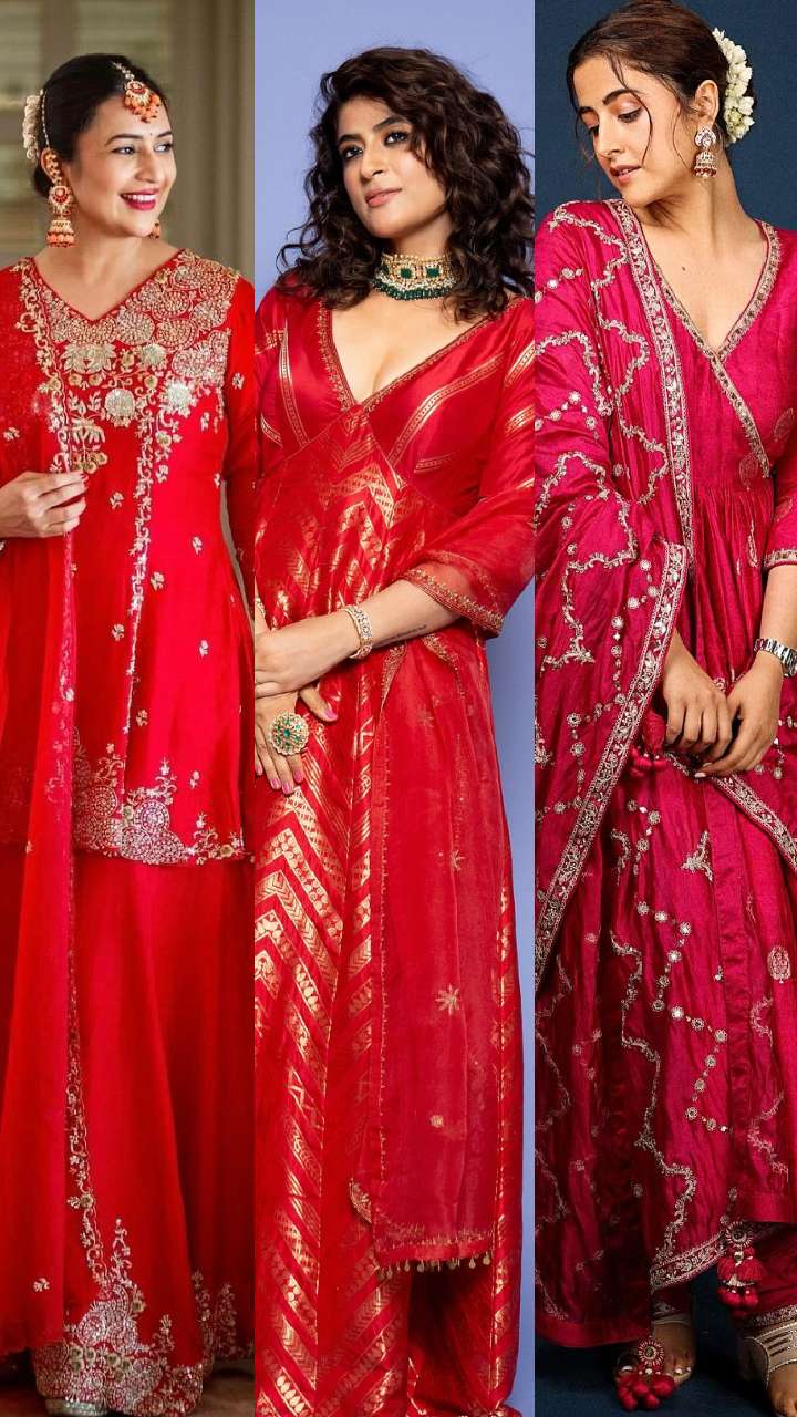 आज हम आपको कुछ एक्ट्रेसेस के रेड सलवार-सूट दिखाने जा रहे हैं। जिनको आप आज के दिन माता की पूजा में पहन सकती हैं।