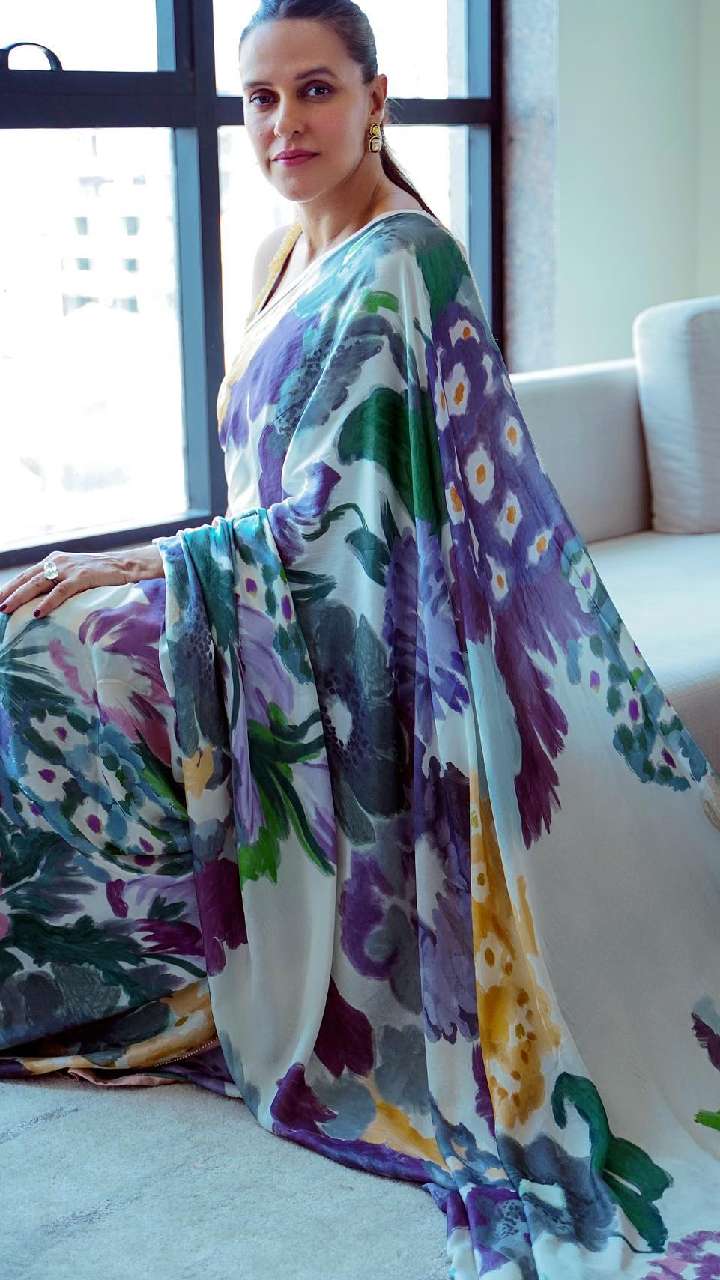 अगर आप चाहें तो आप रेनबो कलर की साड़ी भी स्टाइल कर सकती हैं। एक्ट्रेस का हर लुक काफी ज्यादा स्टाइलिश होती है।