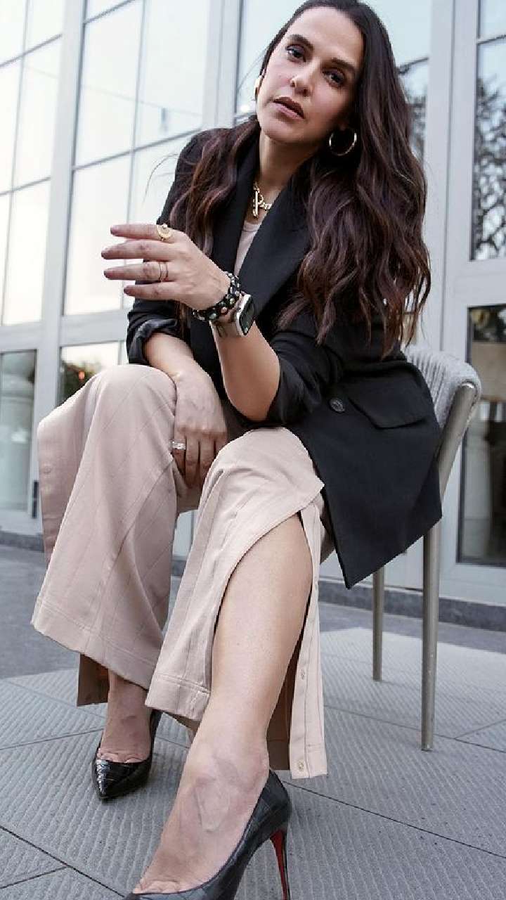 नेहा धूपिया ने हाल में इंस्टाग्राम पर पेंट, क्रॉप टॉप और ब्लेजर में अपना किलर लुक शेयर किया है।