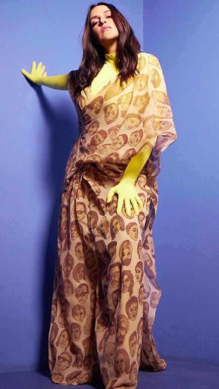 नेहा डुअल पल्लू साड़ी सेट में स्लेइंग पोज देती नजर आ रही हैं। फैंस एक्ट्रेस की यूनिक ड्रेसिंग सेंस के दीवाने हो रहे हैं।