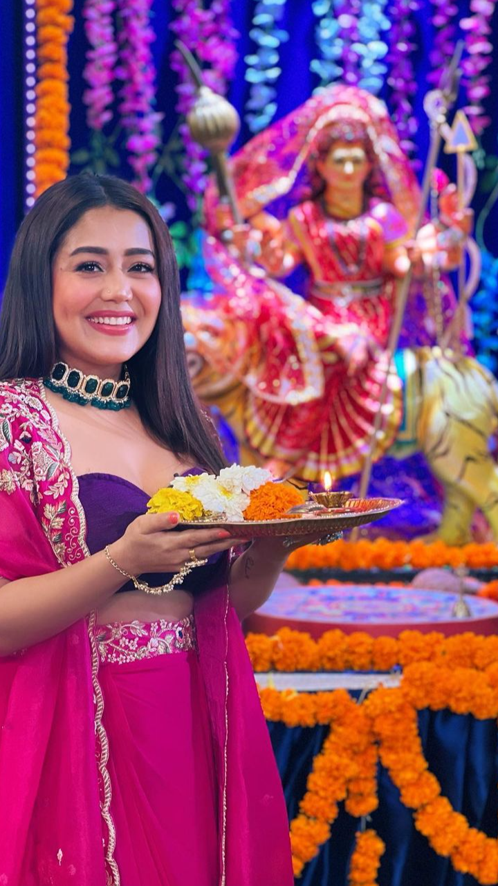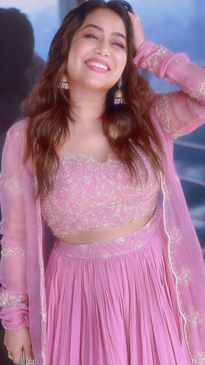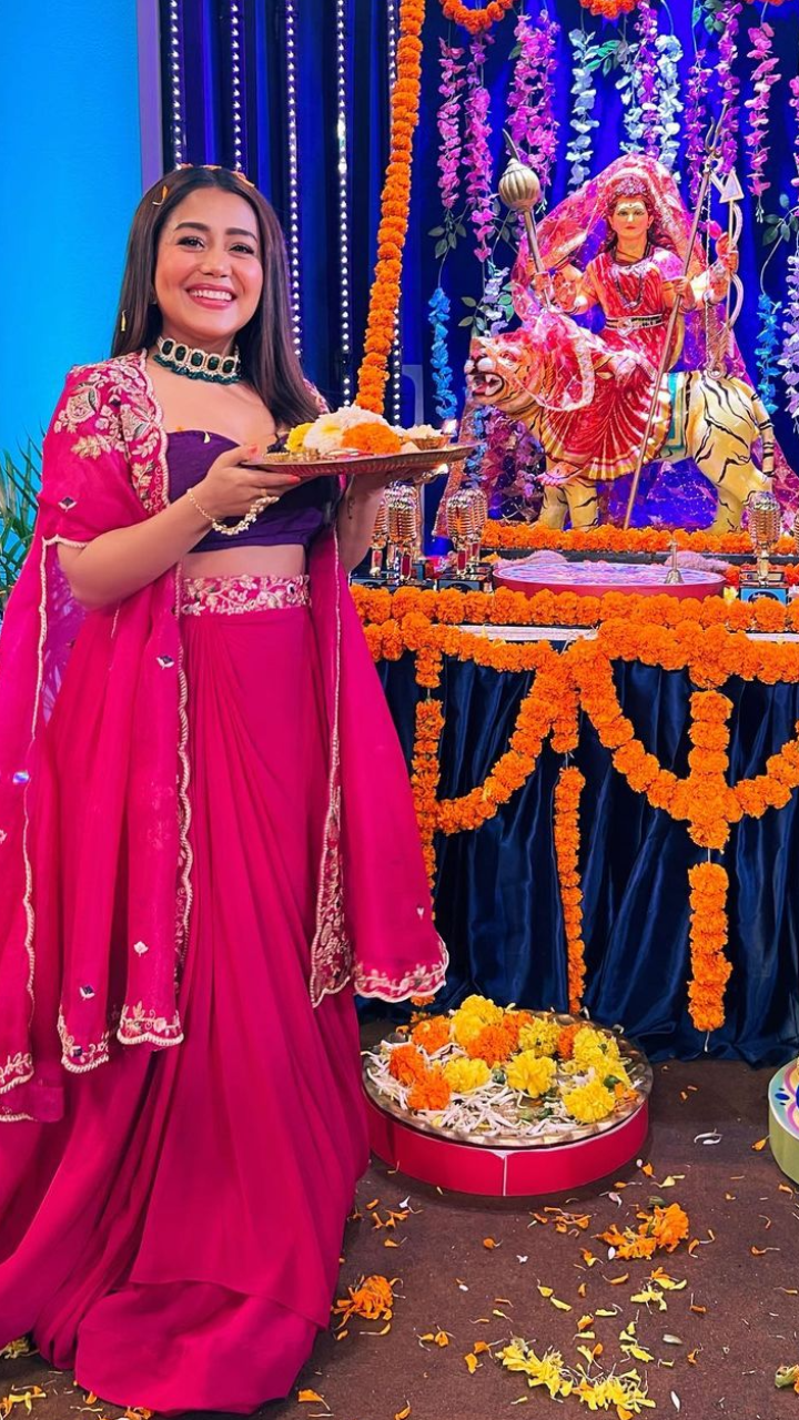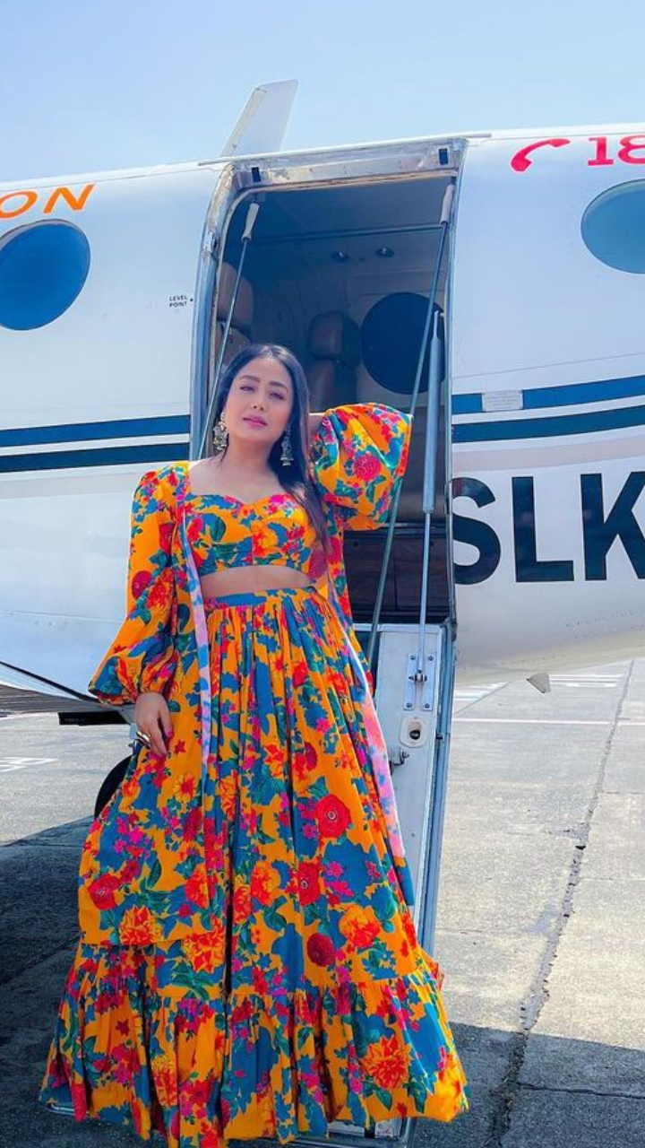 नेहा कक्कड़ का यह शानदार आउटफिट आप इस नवरात्रि में कैरी कर सकते हैं। आउटफिट का कलर कॉम्बिनेशन बहुत प्यारा हैं।