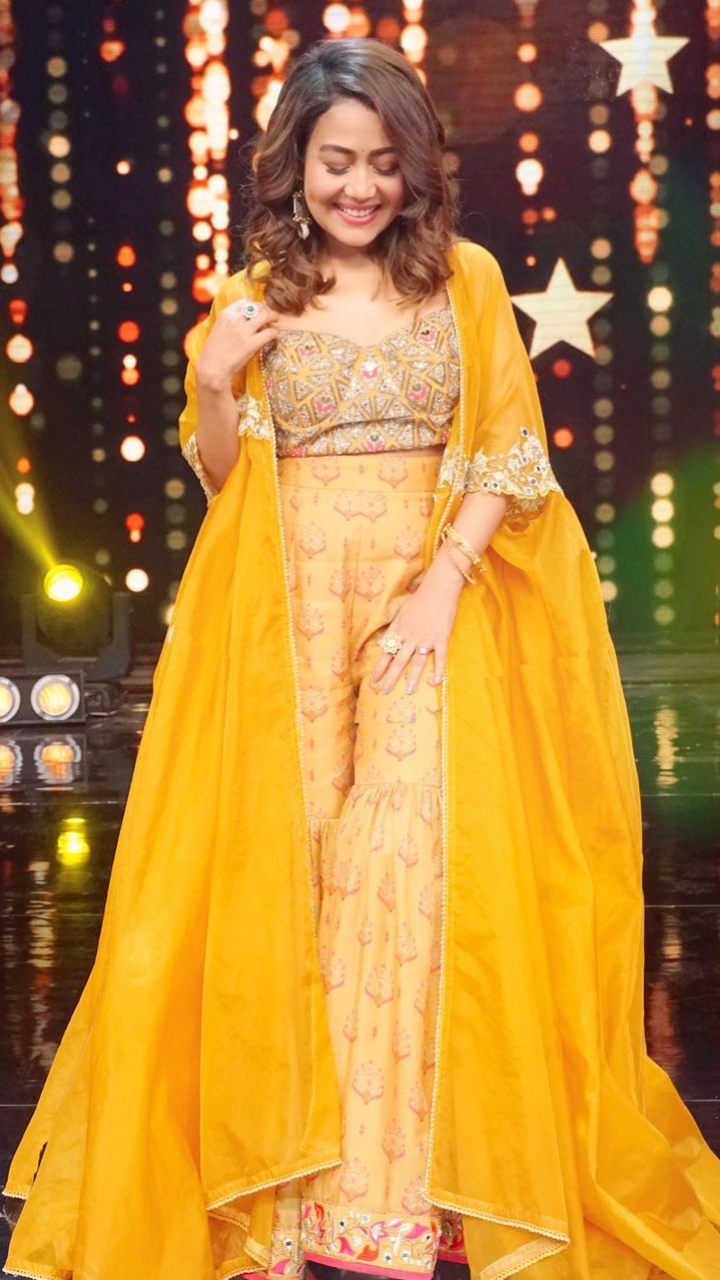 इस शरारा पैटर्न आउटफिट में नेहा बहुत प्यारी लग रही हैं आप भी इस आउटफिट से इंस्पिरेशन ले सकते हैं।