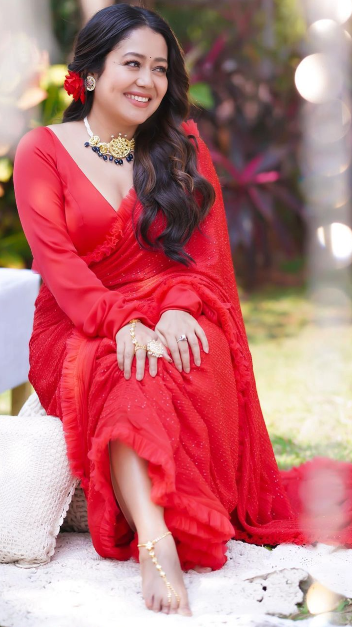 लहंगे की जगह आप साड़ी भी कैरी कर सकती हैं। नेहा की ये रेड कलर की साड़ी नवरात्री के लिए परफेक्ट हैं।