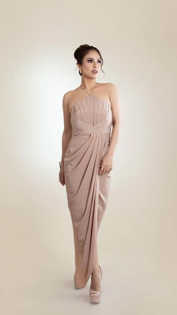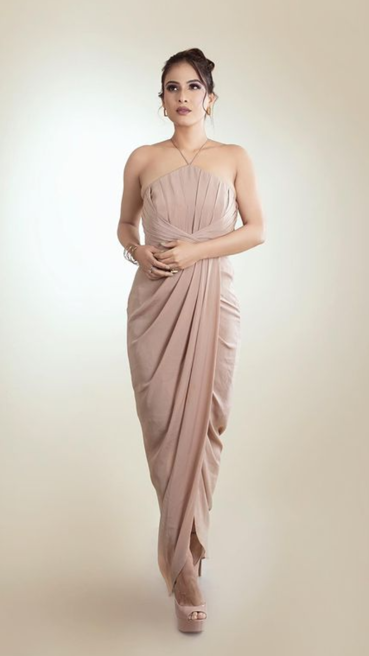 नेहा मलिक वन पीस ऑफ शोल्डर ड्रेस में बेहद ही चार्मिंग लग रही हैं।