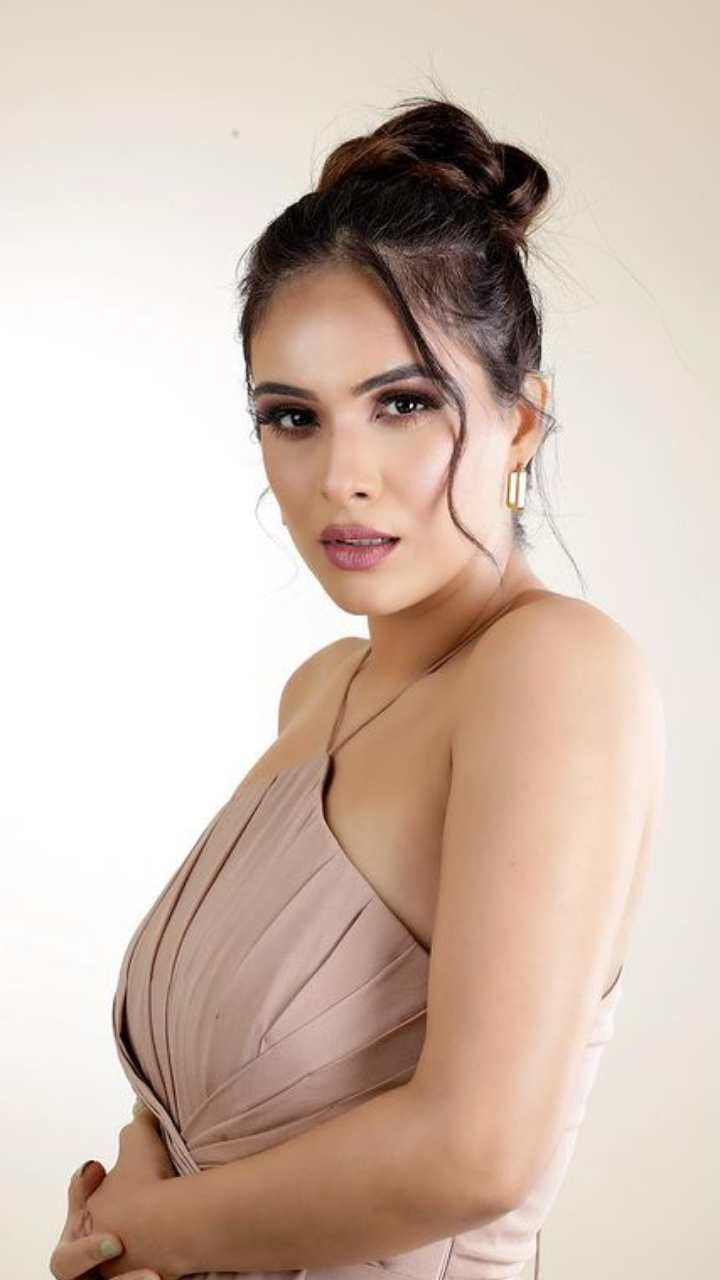 नेहा मलिक ने अपने इस लुक में न्यूड मेकअप से चार चांद लगाए हैं।