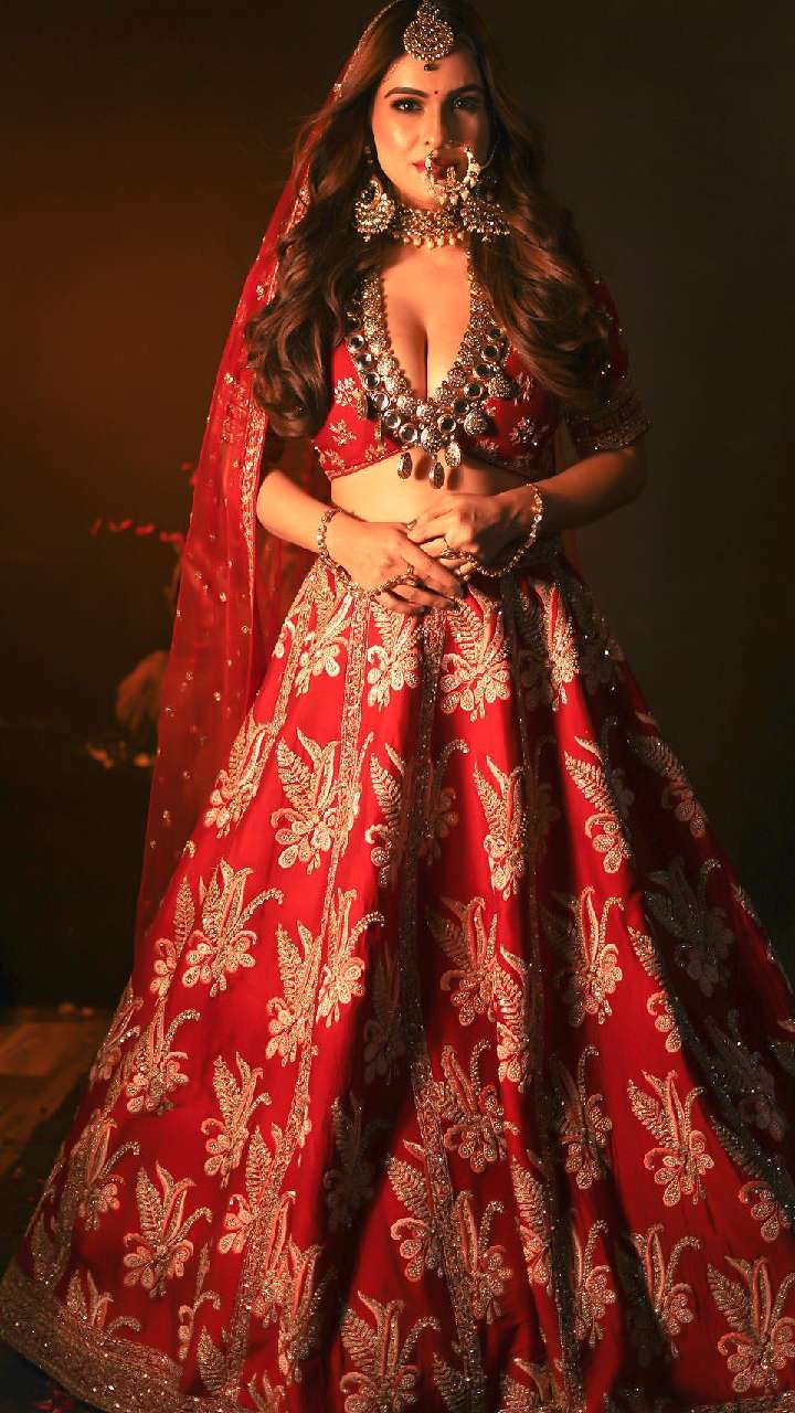 अगर आप अपने लुक को बोल्ड बनाना चाहती हैं तो आप नेहा मलिक की तरह ही वी नेक ब्लाउज डिजाइन को पेयर कर सकती हैं।