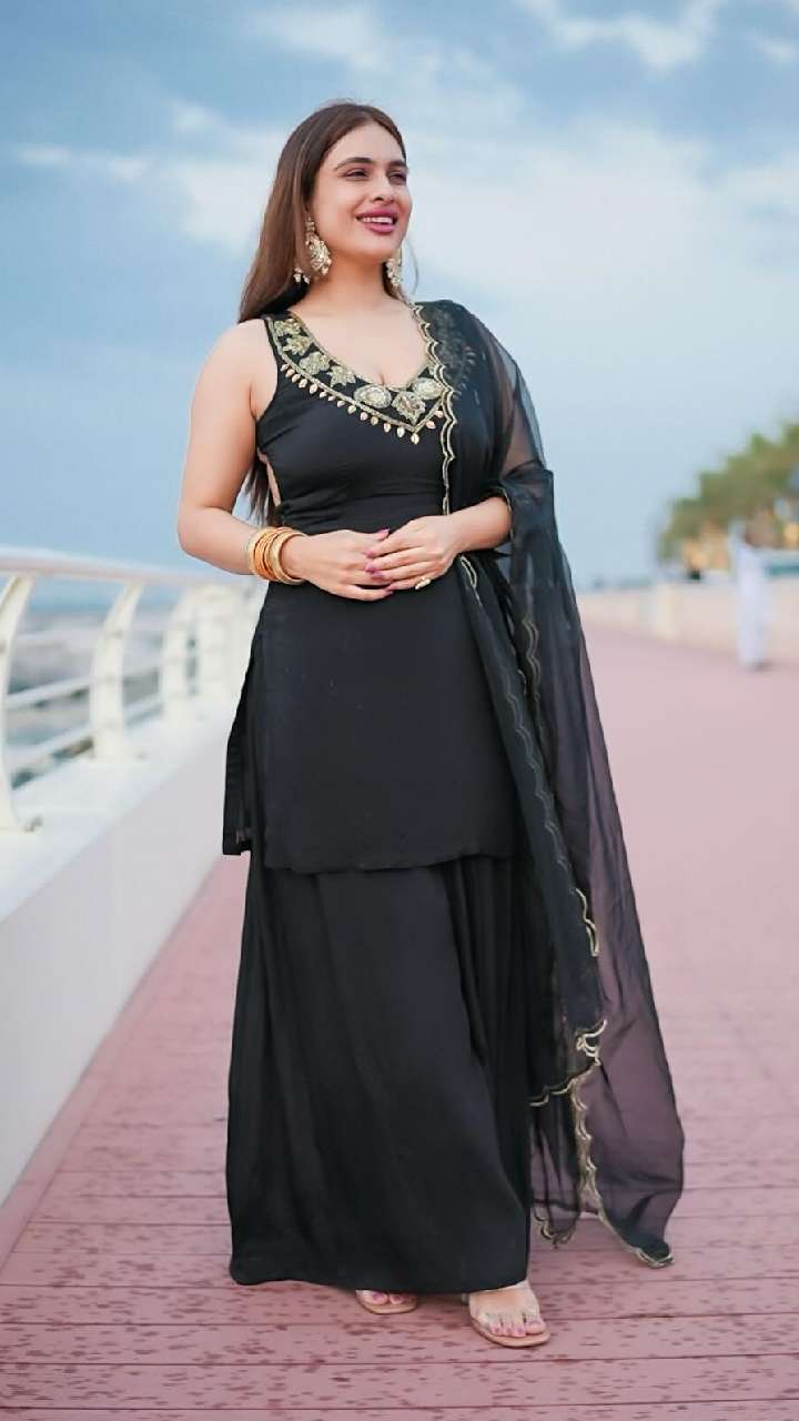 नेहा मलिक सोशल मीडिया पर काफी ज्यादा एक्टिव रहती हैं। हाल ही में एक्ट्रेस ने ब्लैक कलर के शरारा में अपना लेटेस्ट लुक शेयर किया था।