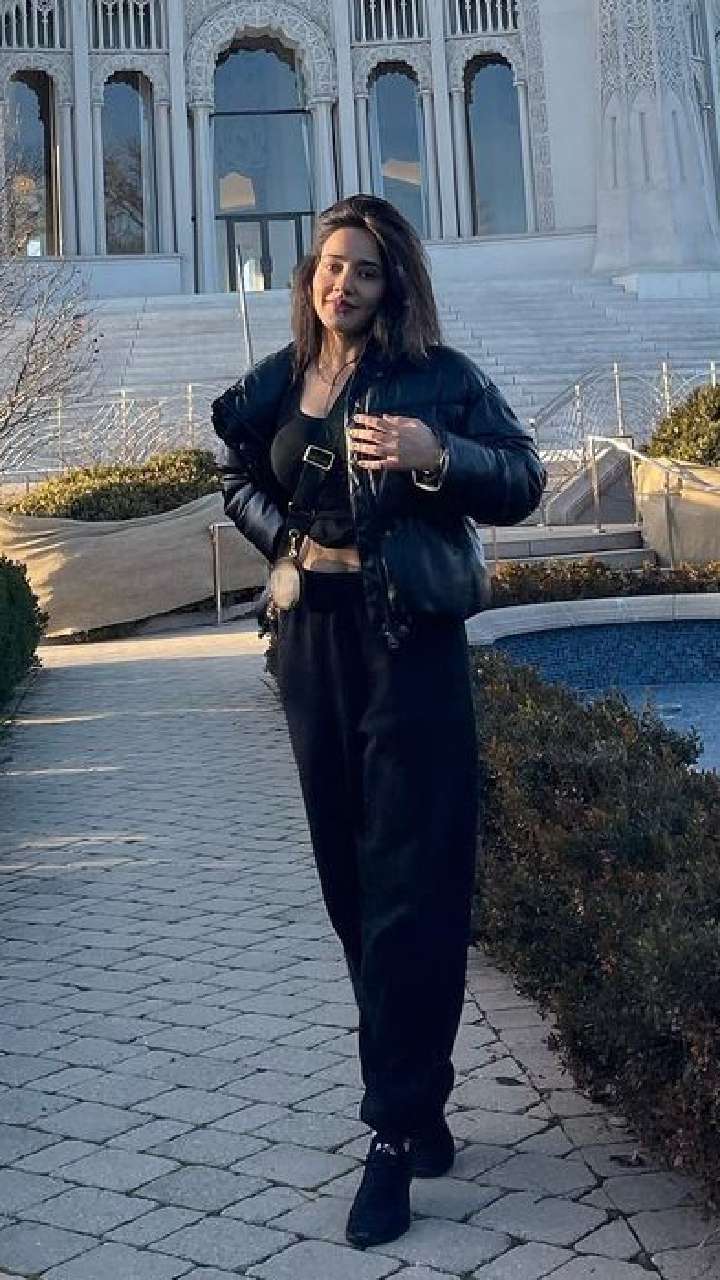 तस्वीर में एक्ट्रेस ने पर्पल कलर की टॉप और ब्लैक कलर की स्कर्ट पहनी हुई हैं। एक्ट्रेस का ये लुक फैंस को बेहद आकर्षक लग रहा हैं।