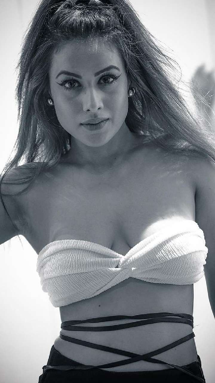निया का ये व्हाइट ब्रालेट टॉप संग ब्लैक पेंट लुक बेहद किलर नजर आ रहा है।