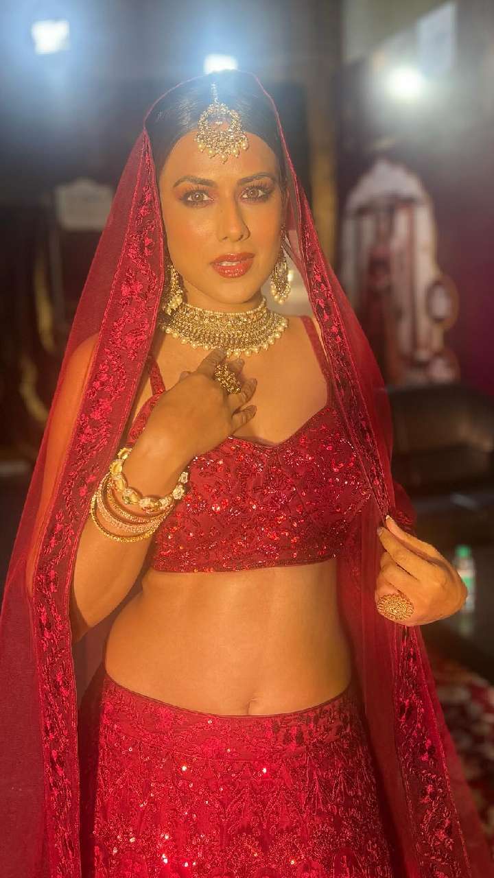 ब्राइडल किसी फेस्टिवल पर निया के जैसा शिमरी रेड वर्क वाला लहंगा स्ट्रैपी चोली लुक को कॉपी कर सकती हैं। हैवी ज्वैलरी इसके संग काफी जंच रही है।