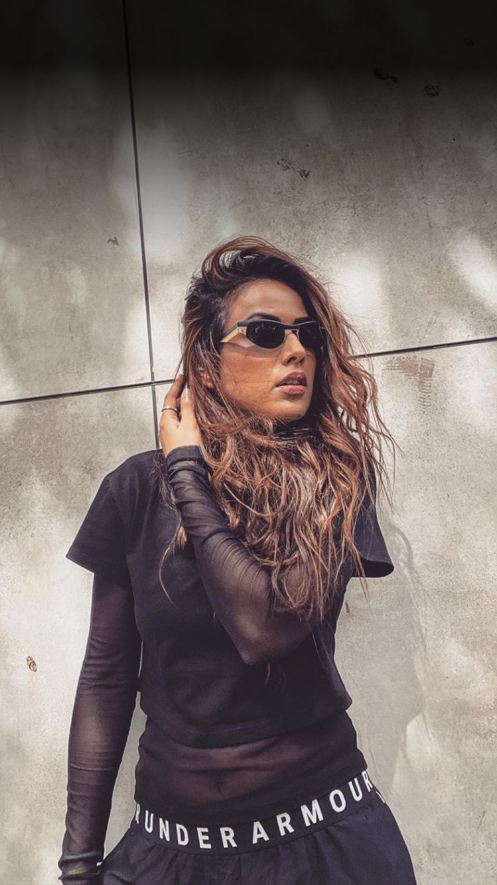 निया ने अपनी लेटेस्ट फोटोज में ब्लैक रिंग टॉप और नेट जैगिंग कैरी की है।