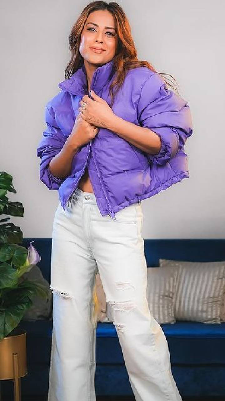 क्रॉप टॉप और व्हाइट पेंट में निया शर्मा के इस लुक को आप भी कैरी कर सकते हैं।
