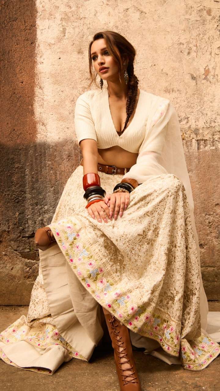 अभिनेत्री गोल्डन कलर की बनारसी साड़ी में बेहद खूबसूरत लग रही हैं। इसके साथ कंट्रास्ट बीड्स का मल्टी लेयर नेकपीस काफी जंच रहा है।