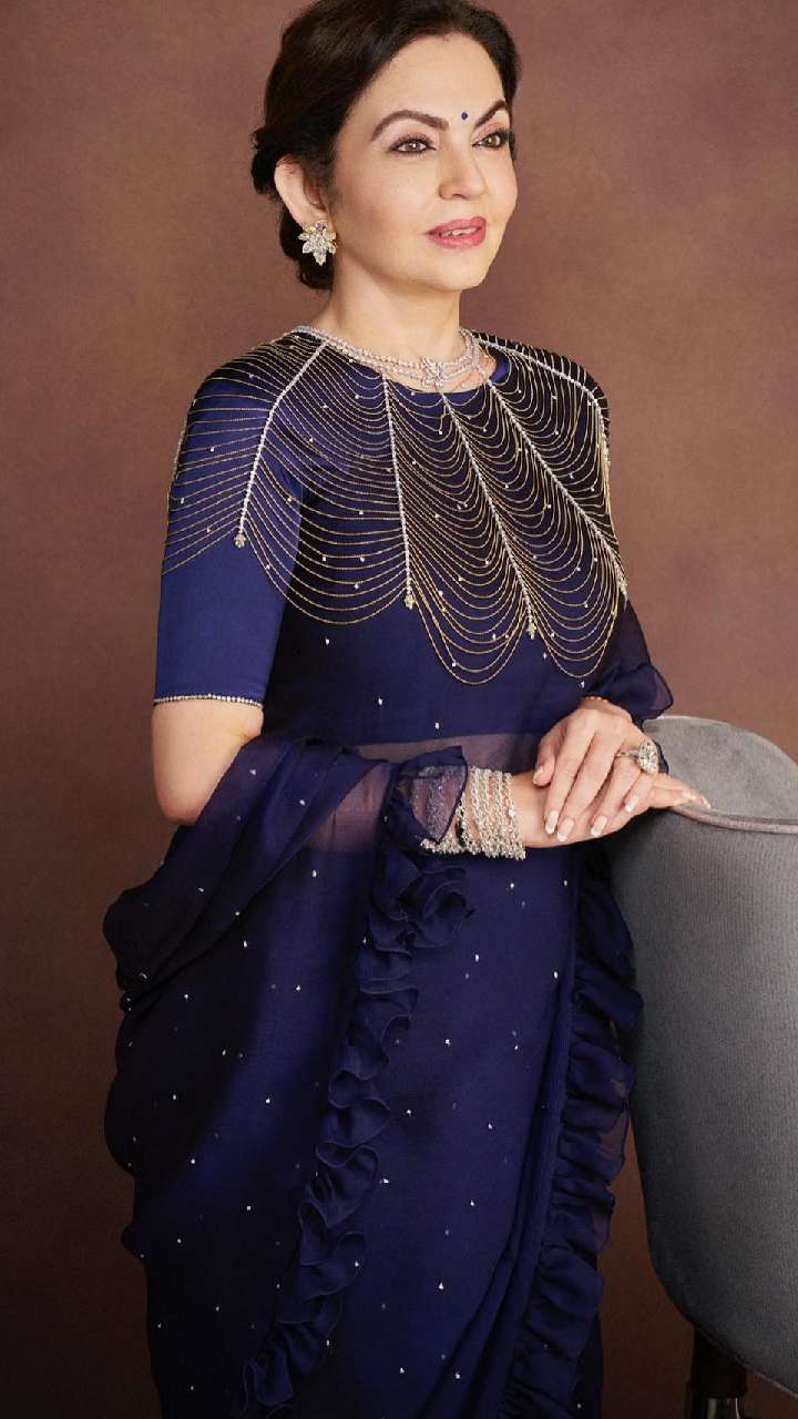 नीता अंबानी का फैशन सेंस किसी भी एक्ट्रेस से कम नहीं हैं। नीता अंबानी इस ब्लैक साड़ी में भी बेहद खूबसूरत लग रहीं हैं।