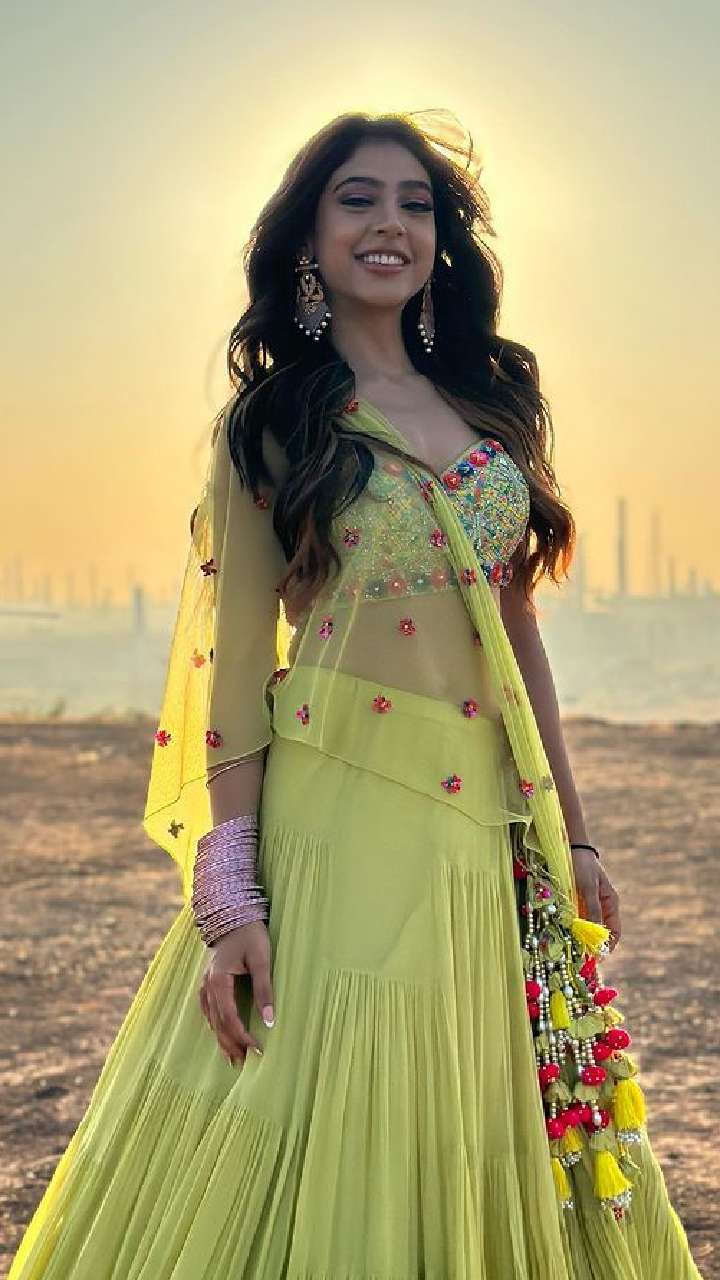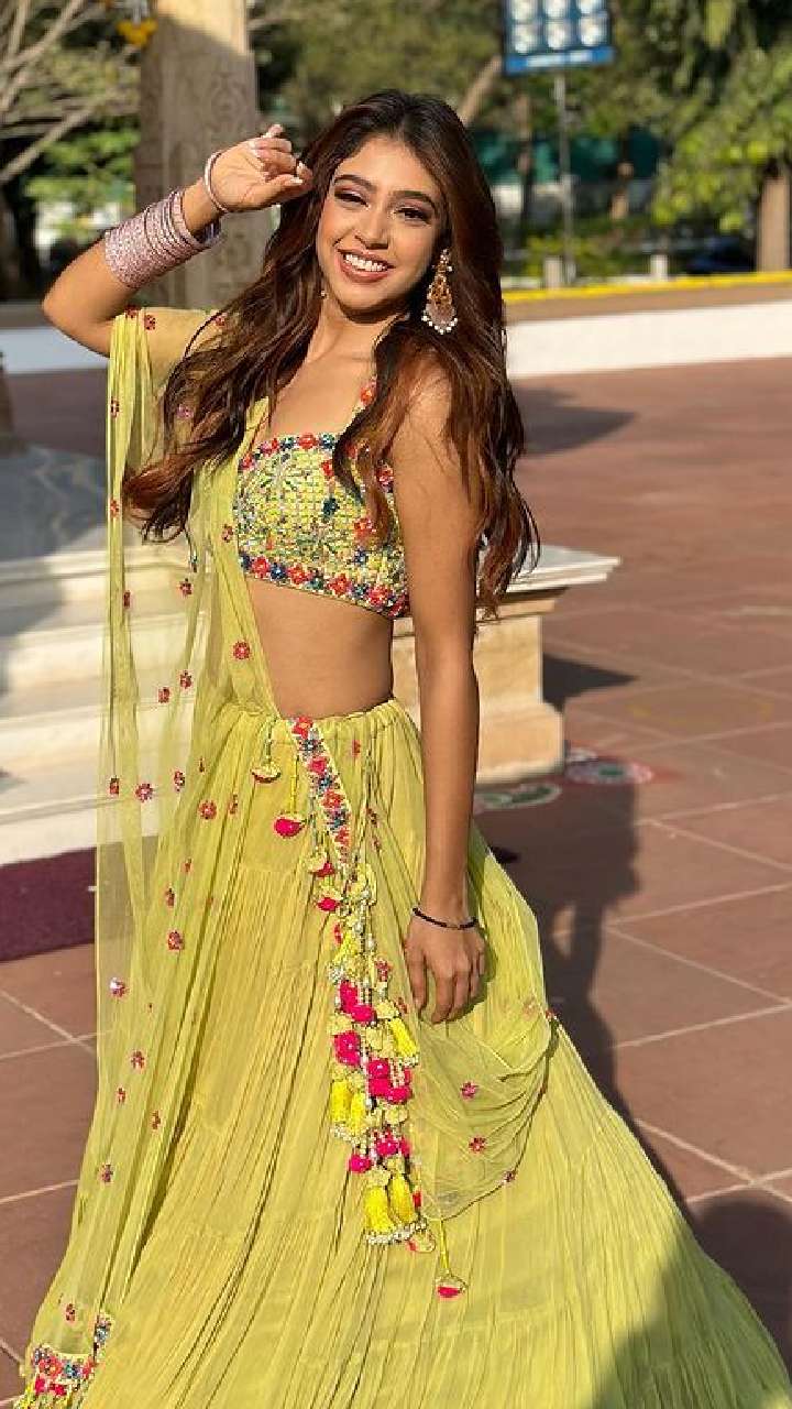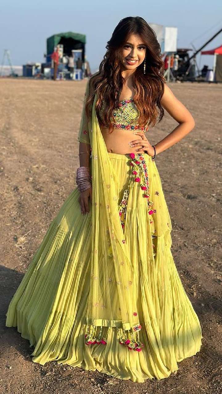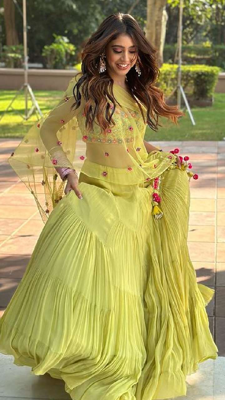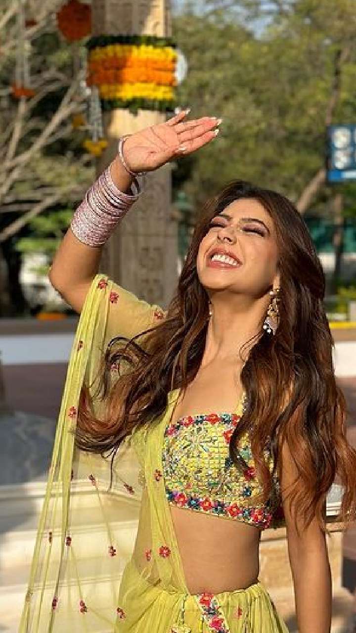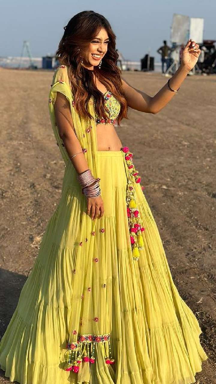 नीति टेलर ने येलो कलर का लेहंगा पहना हुआ है और हाथों में चूड़ी के साथ पूरा इंडियन लुक कैरी किया है।