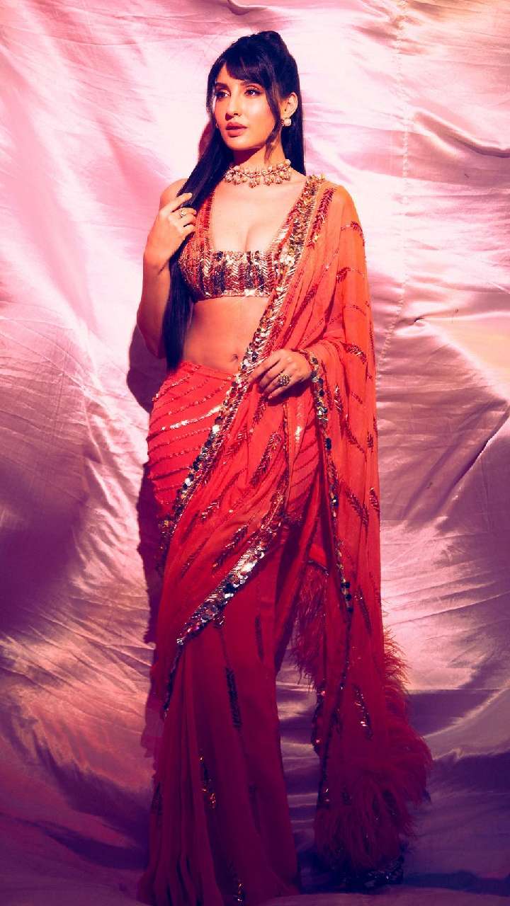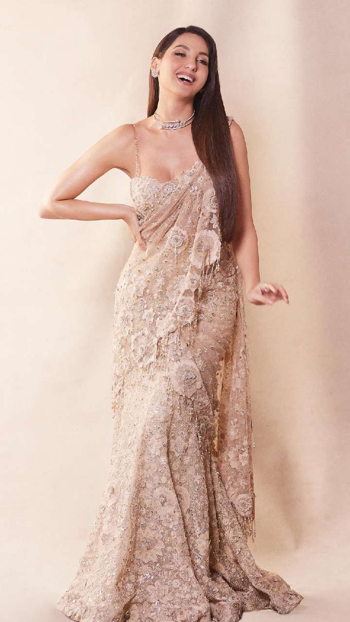 नोरा फतेही को साड़ी कैरी करना बहुत पसंद है और एक्ट्रेस के पास साड़ी का शानदार कलेक्शन भी है, जिससे आप भी इंस्पिरेशन ले सकती हैं।