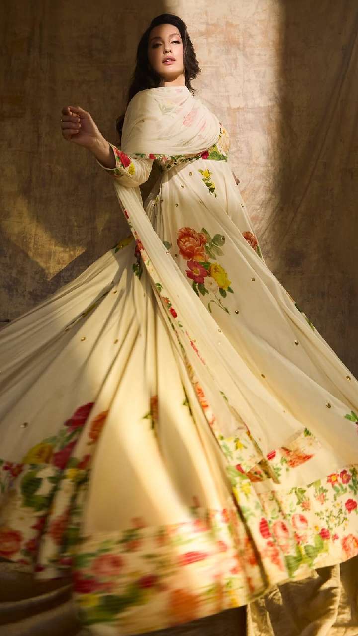 शादी के फंक्शन में शानदार दिखना चाहती हैं, तो नोरा की तरह ही प्रिंटेड अनारकली सूट ट्राई करें। ऐसे सूट लुक को सादगी भरा बना देती हैं।