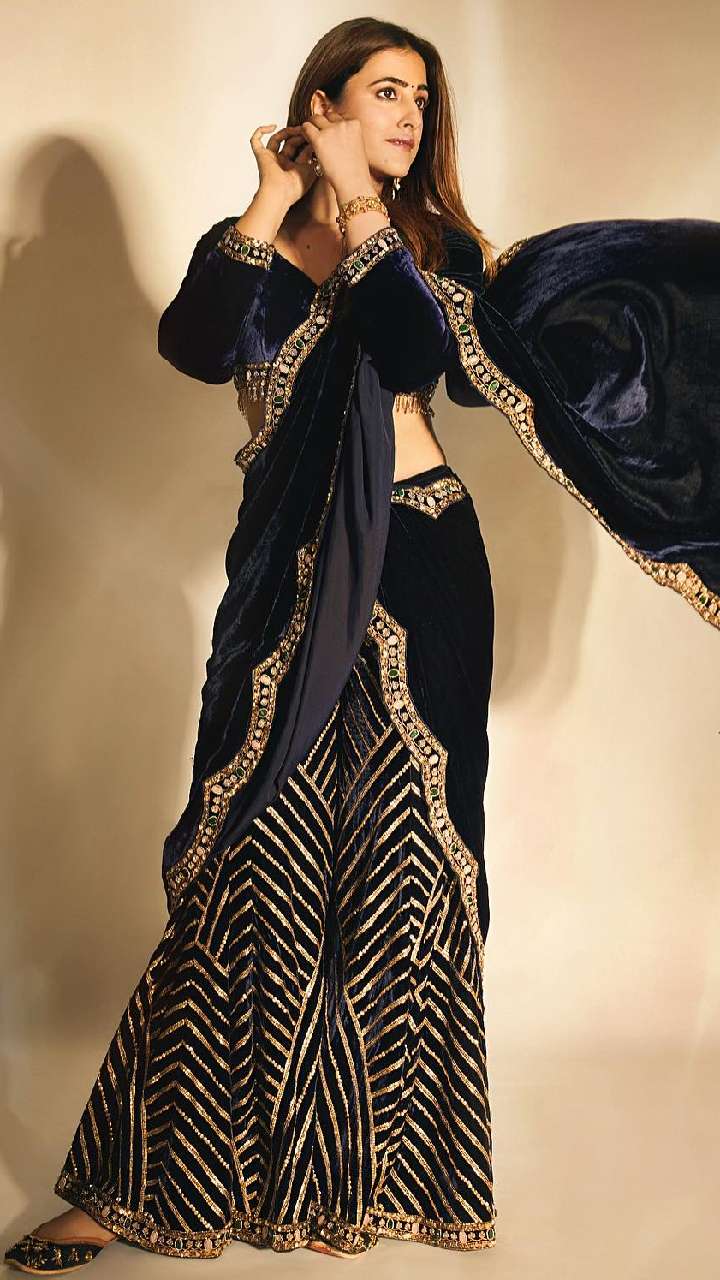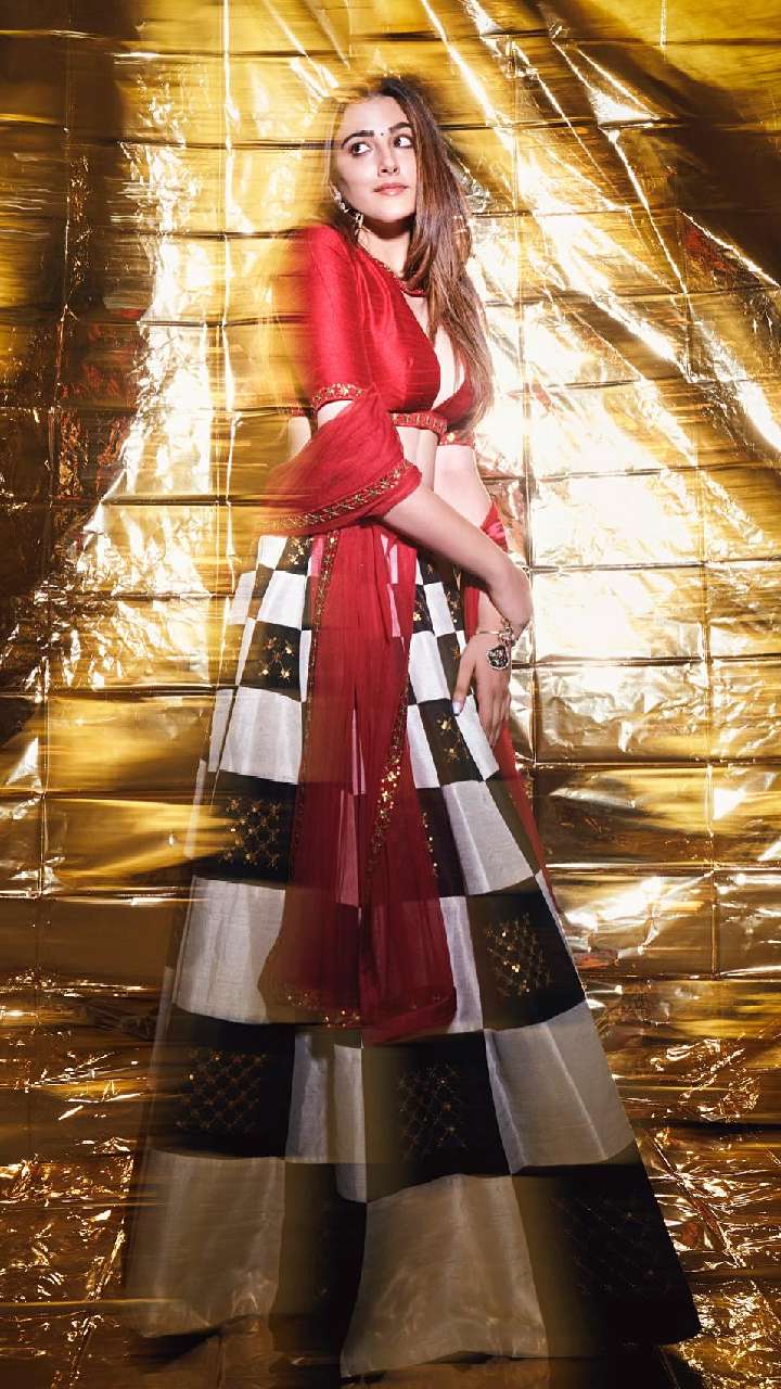 अगर आप कुछ डिफरेंट कैरी करना चाहती हैं तो आप नूपुर सेनन के इस लुक को कॉपी करें। रेड ब्लाउज के साथ एक्ट्रेस ने चैक लहंगा पेयर किया है।