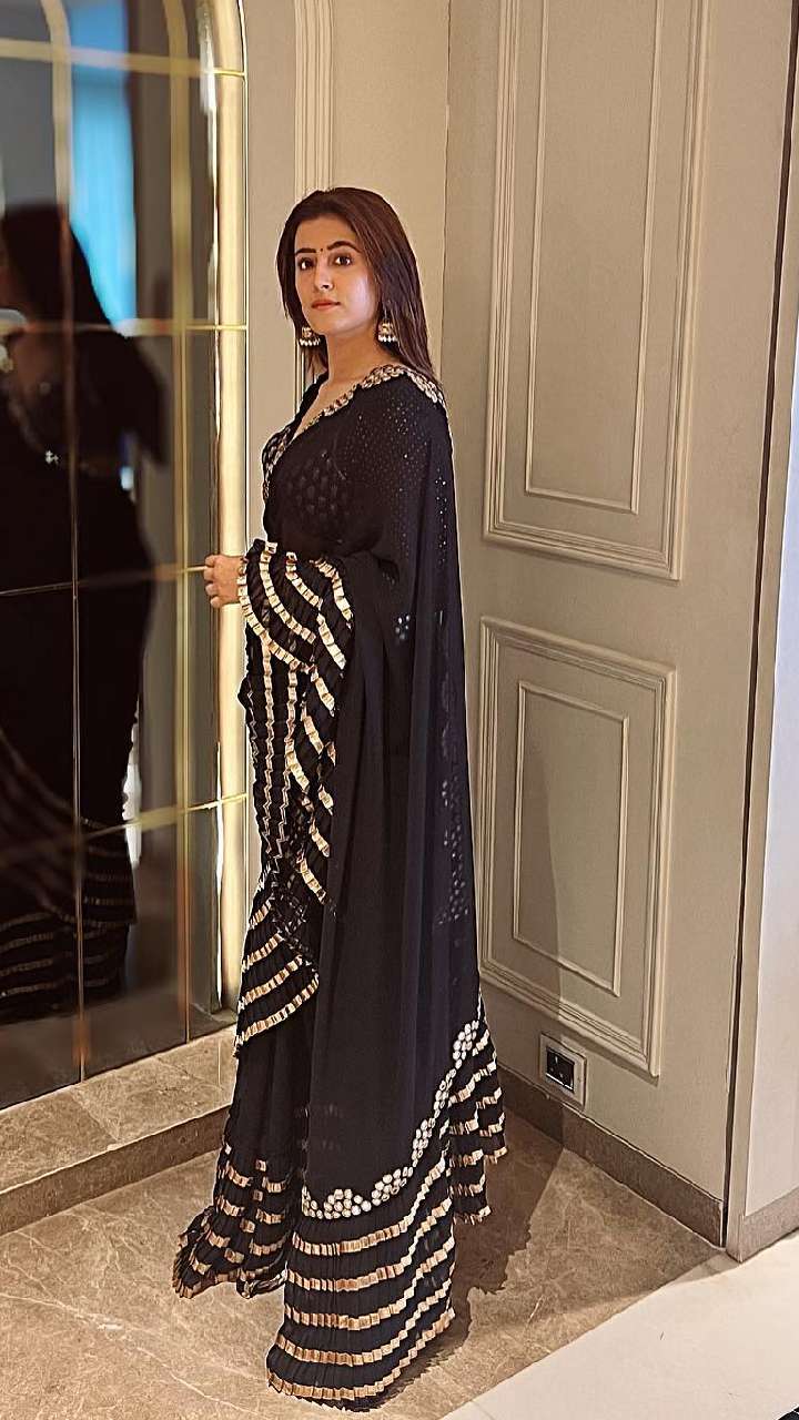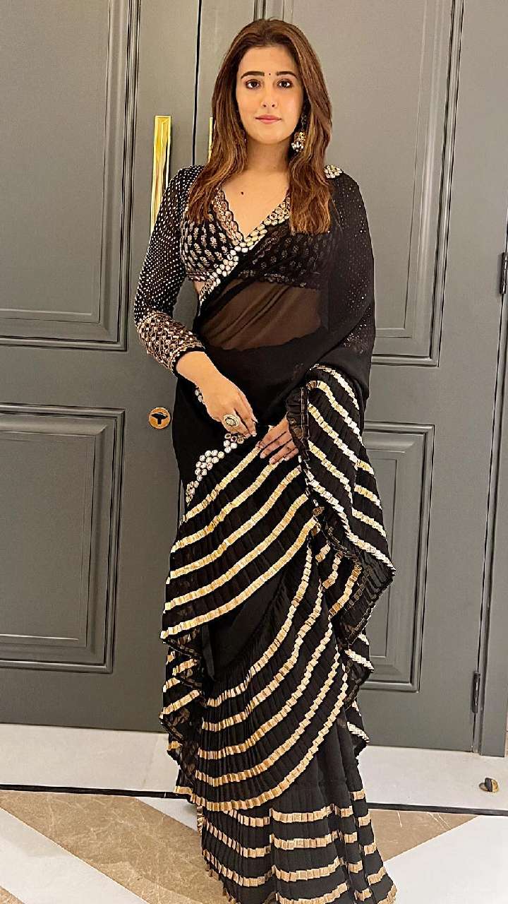 अगर आप ब्लैक लवर हैं तो आपको नूपुर सेनन का ये साड़ी लुक कैरी कर सकती हैं। ब्लैक साड़ी काफी ज्यादा खूबसूरत लग रही है।