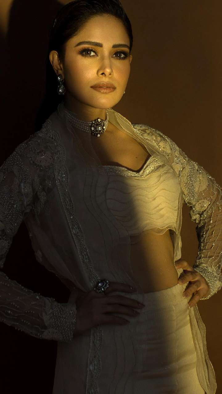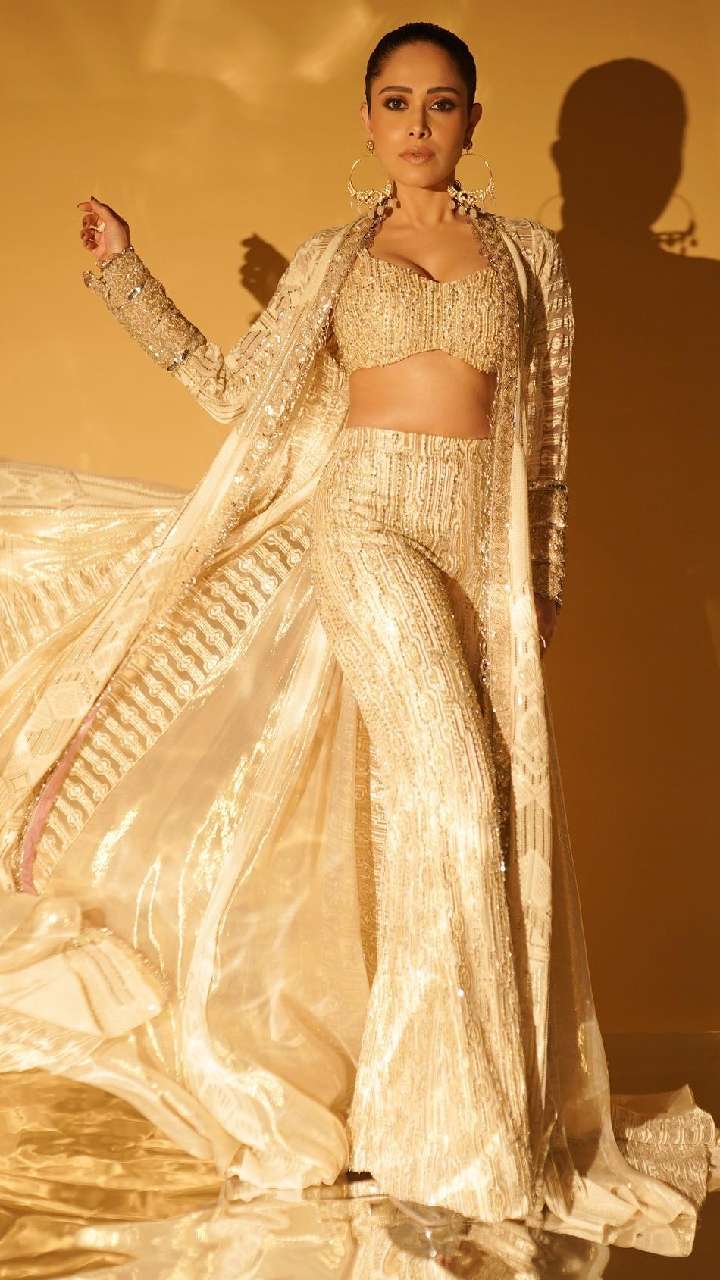 नुसरत भरूचा इस पर्ल इंडो वेस्टर्न ड्रेस में एलिगेंट लग रहीं हैं। अगर आप सोबर और अट्रैक्टिव लुक चाहती हैं तो ये पर्ल लुक ट्राई करें।