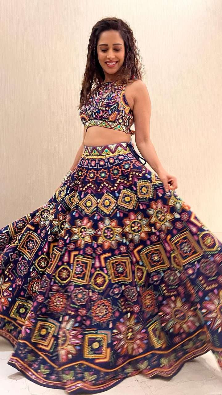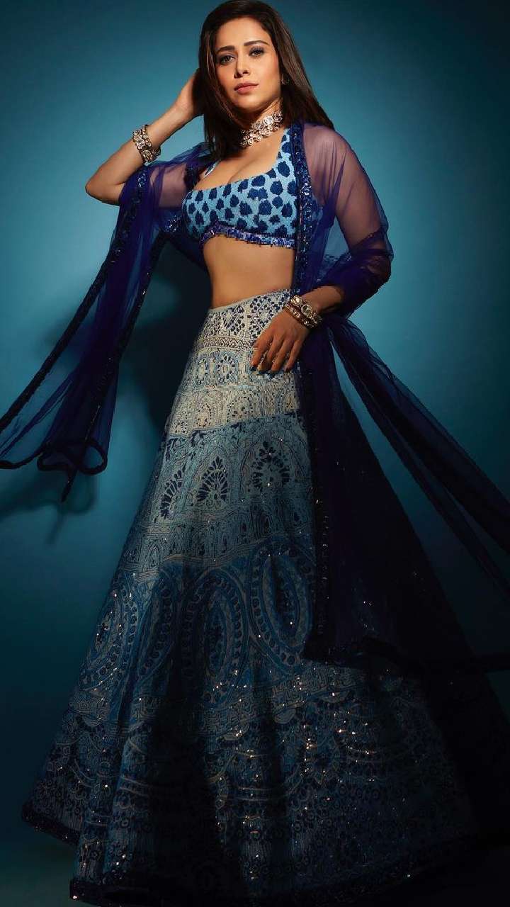 नुसरत इस सेक्विन स्काई ब्लू लहंगा में बला की खूबसूरत लग रही हैं।