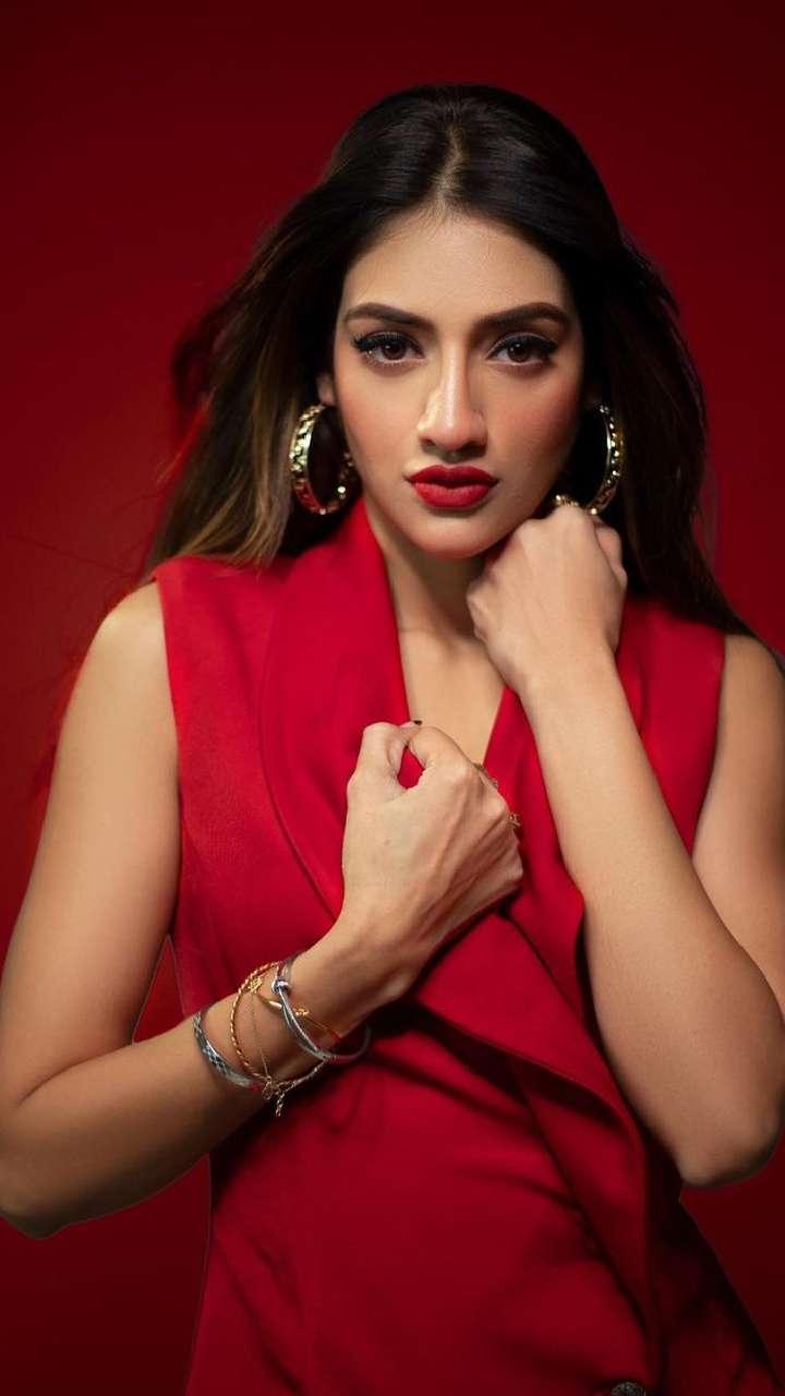 नुसरत तस्वीर में ग्लॉसी लिपस्टिक लगाए और शटल मेकअप किए बेहद कातिलाना अदाएं देती देखी जा सकती है।