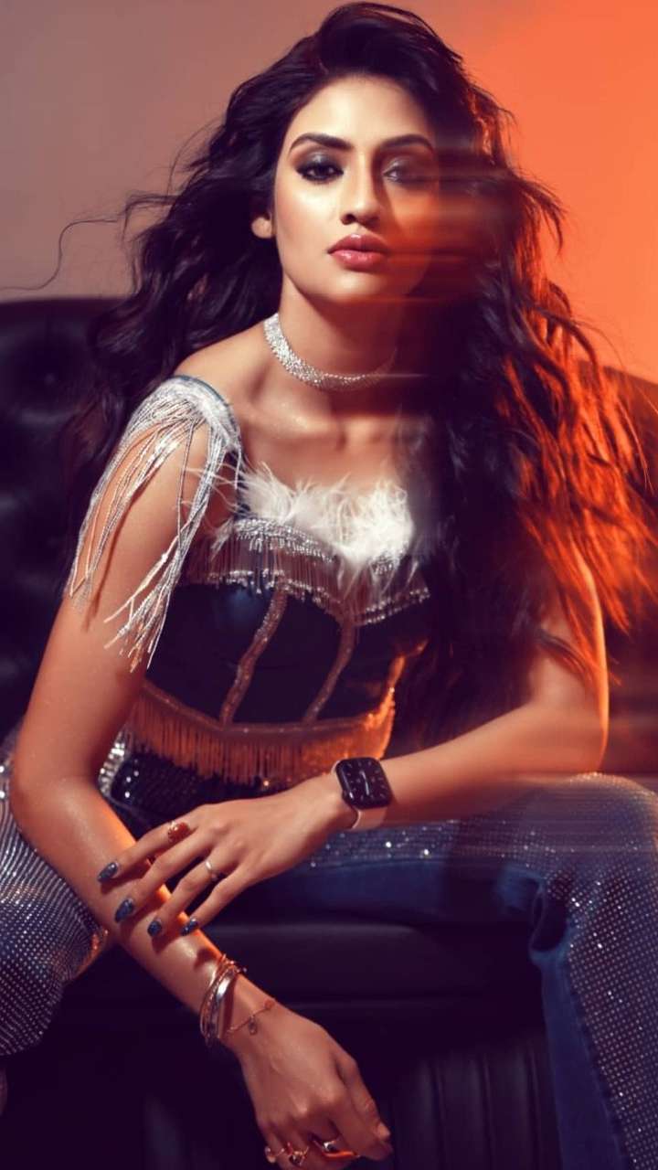 तस्वीर में एक्ट्रेस ने डेनिम फ्रिल क्रॉप टॉप और सेक्विन पैंट पहनी हुई हैं।