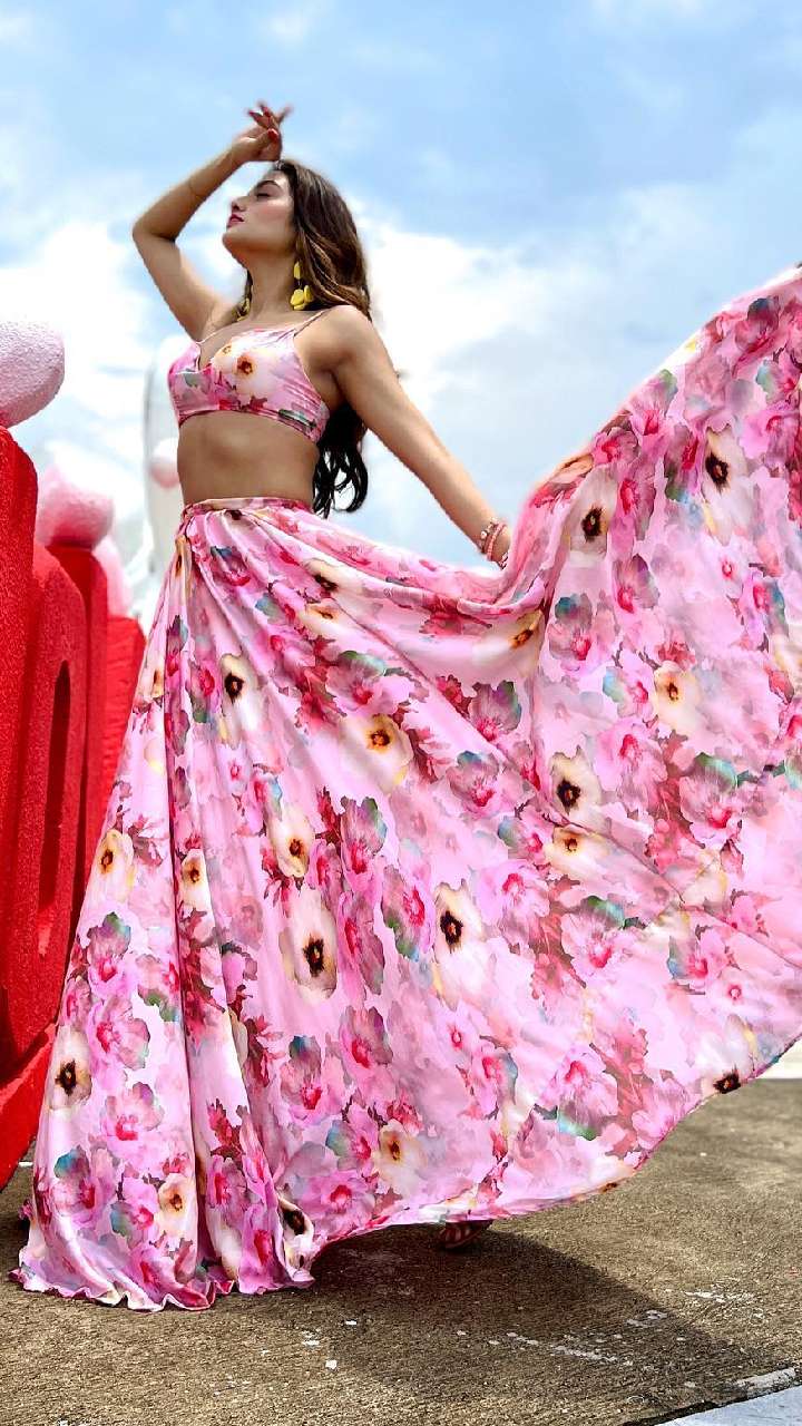 यंग गर्ल्स त्योहारों के सीजन में ऐसा फ्लोरल प्रिंट लहंगा ट्राई कर सकती हैं। ये काफी स्मार्ट और प्रिटी लुक देते हैं।