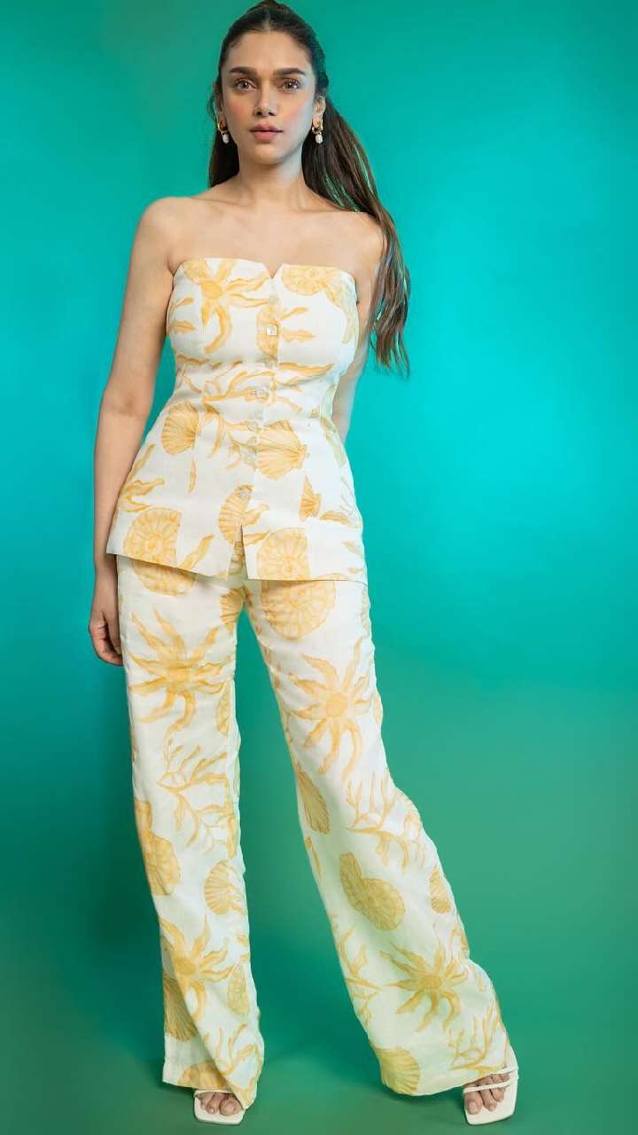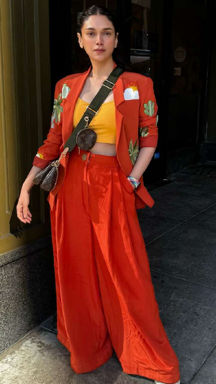 गर्ल्स एक्ट्रेस के इस आउटफिट को ऑफिस में डेली वियर के लिए स्टाइल कर सकती हैं। Aditi का बैग बेहद खूबसूरत लग रहा है।
