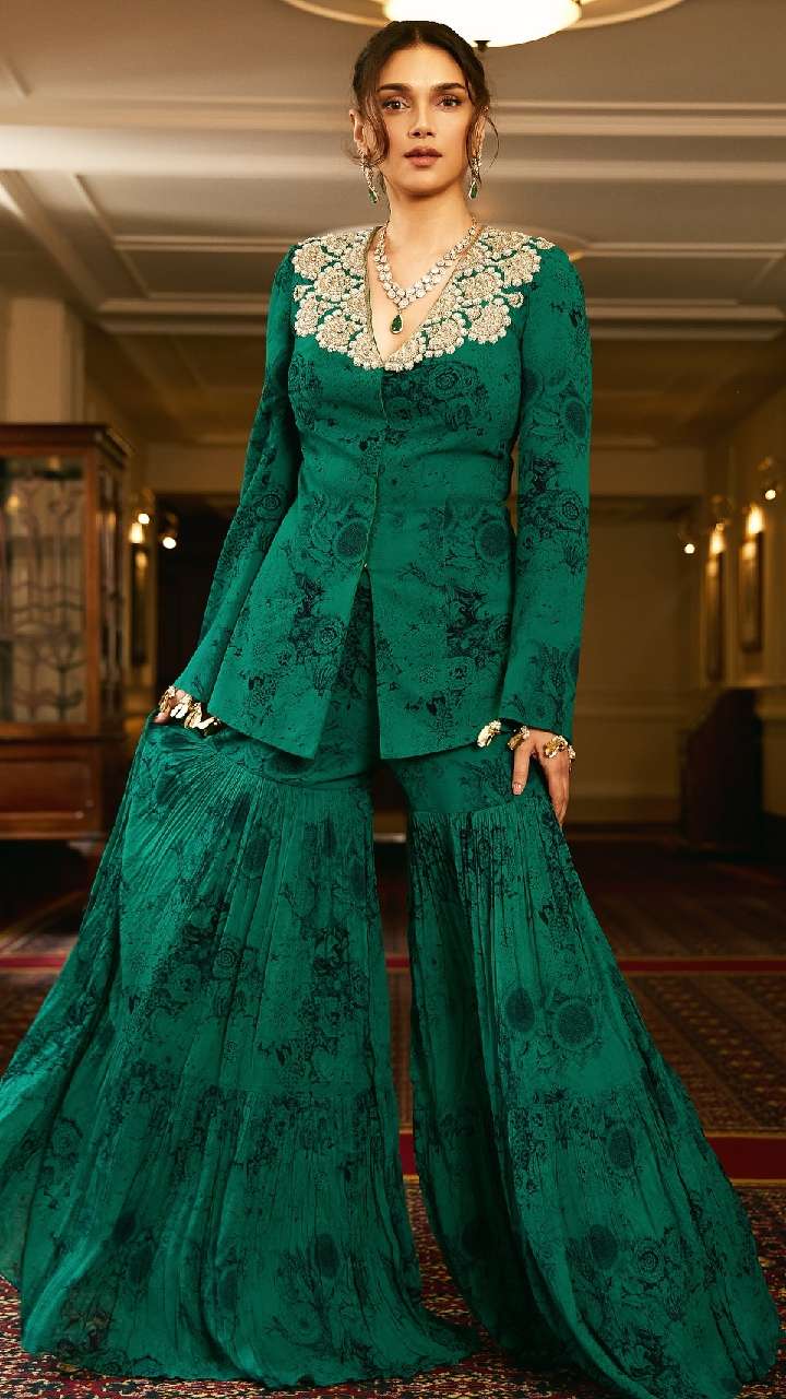 सर्दियों की पार्टी में एक्ट्रेस का यह आउटफिट आपके लिए बेस्ट ऑप्शन है। Aditi Rao ने खूबसूरत नेकलेस के साथ ड्रेस को स्टाइल किया है, जो उनके लुक में चार चांद लगा रहा है।