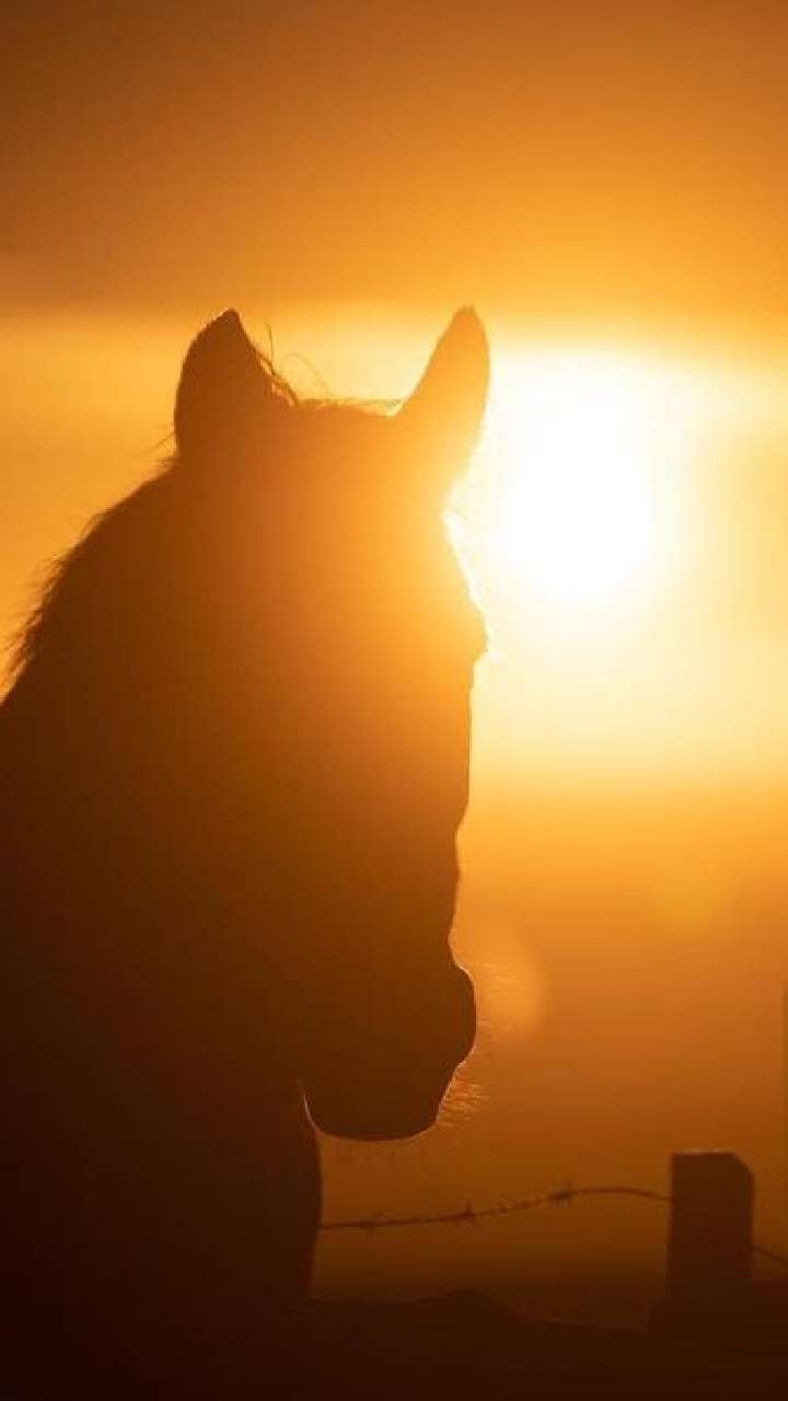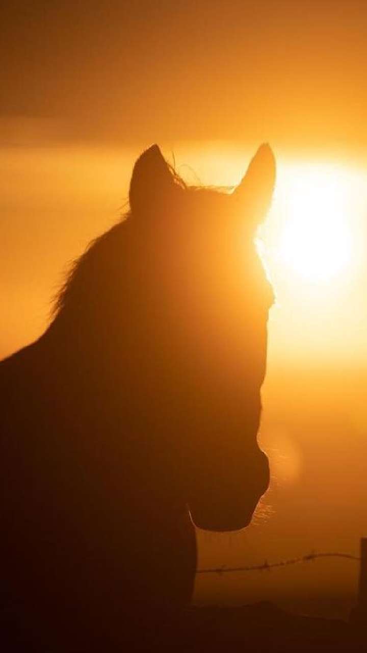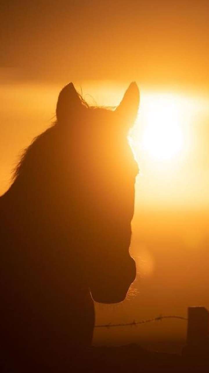 इसी तरह एक तस्वीर खूब वायरल हो रही है। तस्वीर में एक घोड़ा उगते हुए सूरज के सामने खड़ा है।