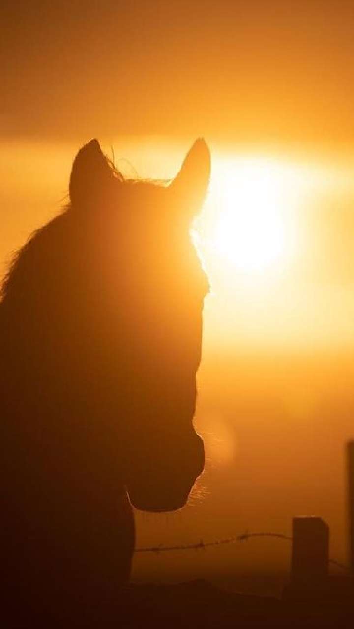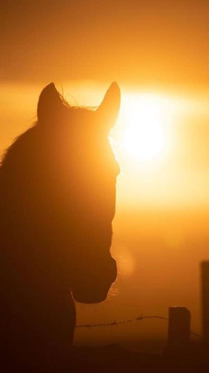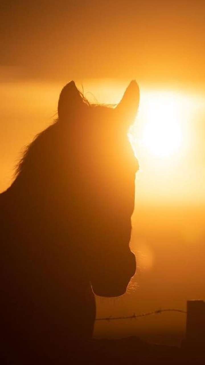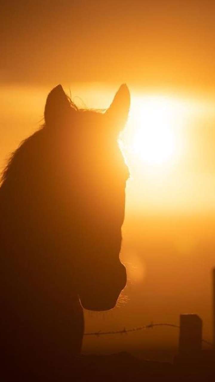 इसी तरह एक तस्वीर खूब वायरल हो रही है। तस्वीर में एक घोड़ा उगते हुए सूरज के सामने खड़ा है।