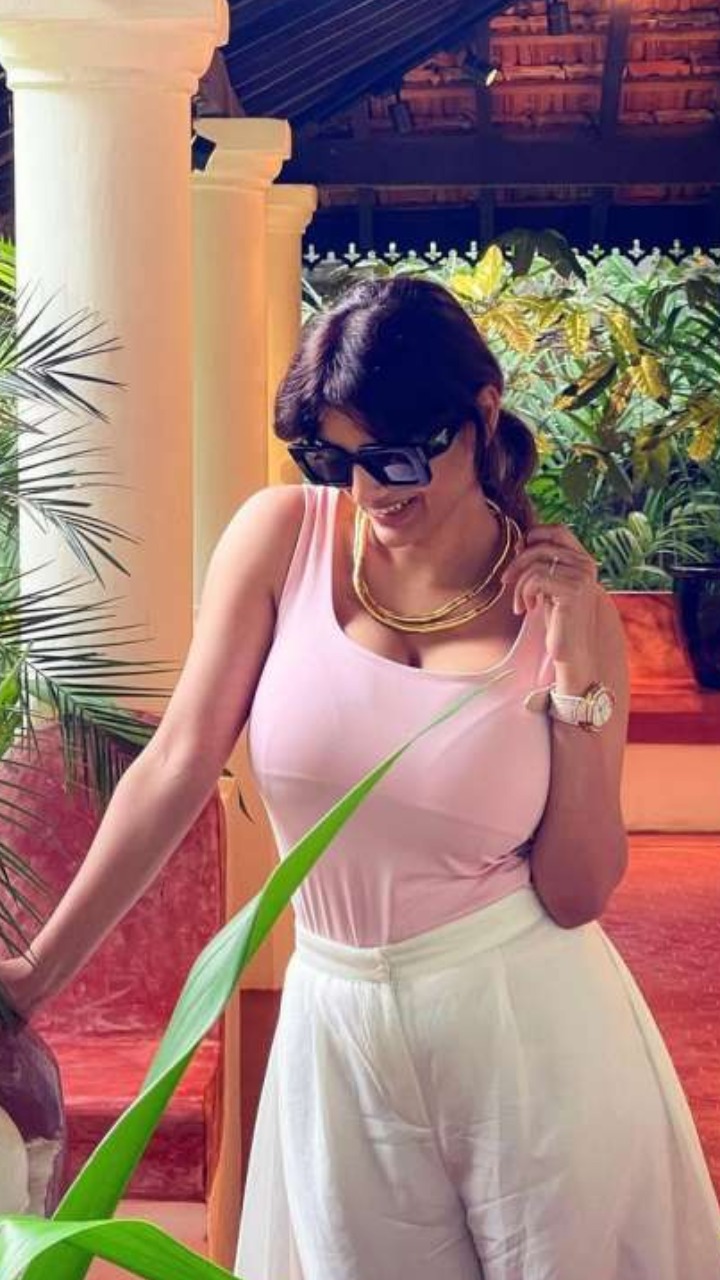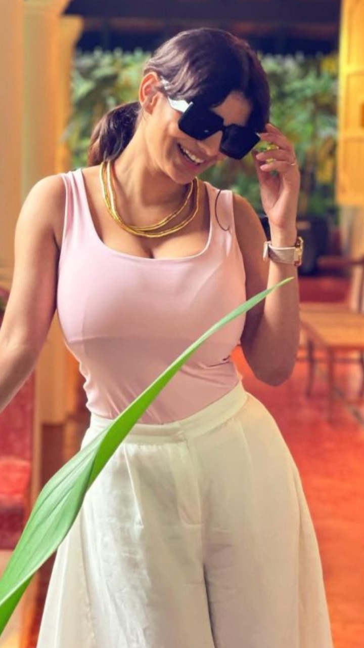 फोटो में लाइट पिंक टैंग टॉप और प्लाजो में भी एक्ट्रेस ऑसम लग रही है।
