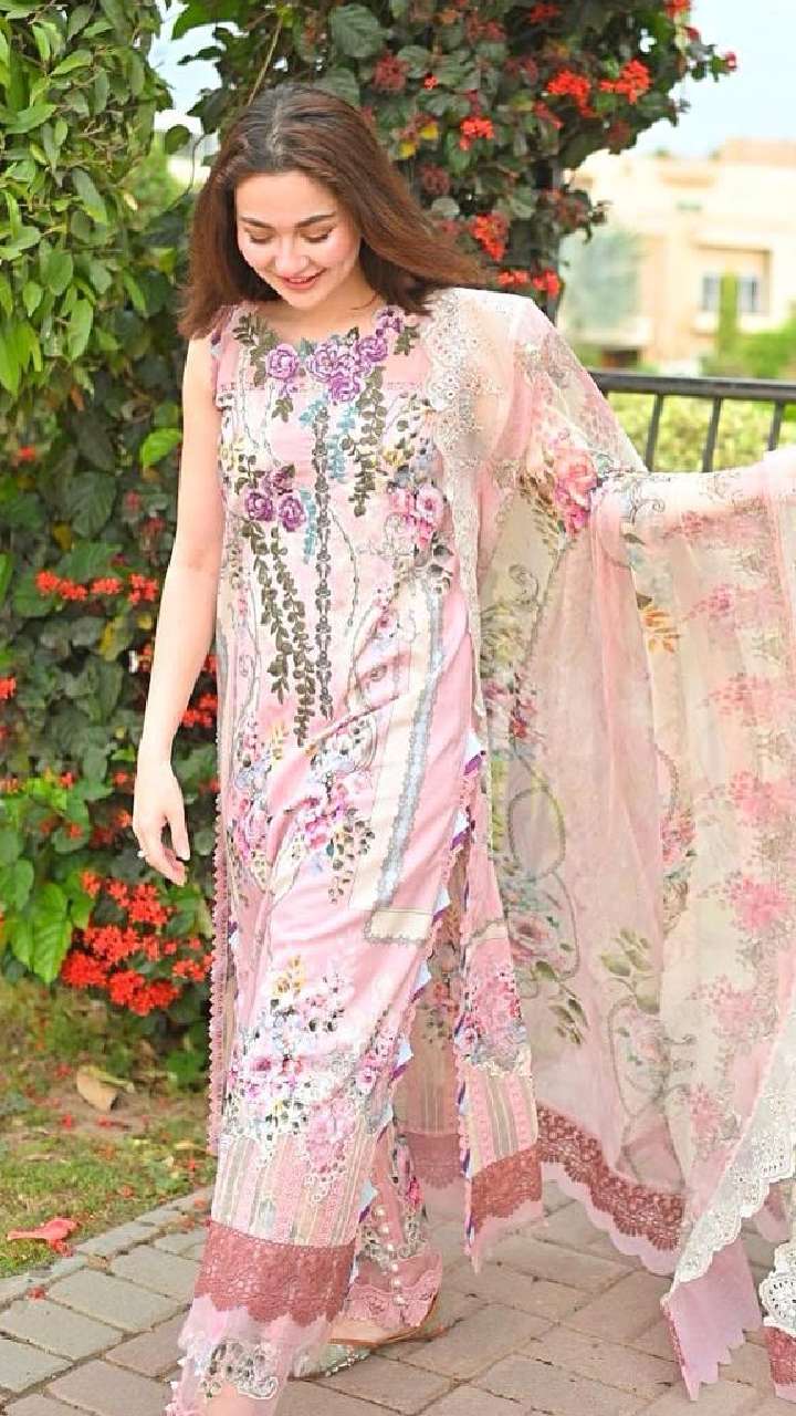 समर सीजन में इस तरह के लाइट कलर फ्लोरल प्रिंट पाकिस्तानी सूट काफी प्रिटी लुक देते हैं।