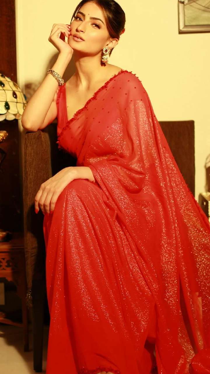अभिनेत्री के साड़ी लुक अलग ही होते हैं। अपने हर गॉर्जियस साड़ी लुक से पलक फैंस को इंप्रेस कर लेती हैं।