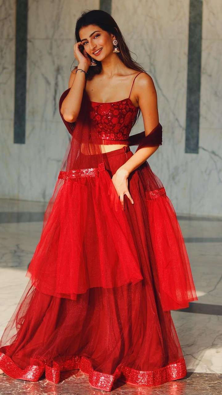पलक का ये रेड लहंगा लुक बेहद कातिलाना है। जिसे आप भी वेडिंग फंक्शन में कैरी करके खुद को स्टाइलिश लुक दे सकते हैं।