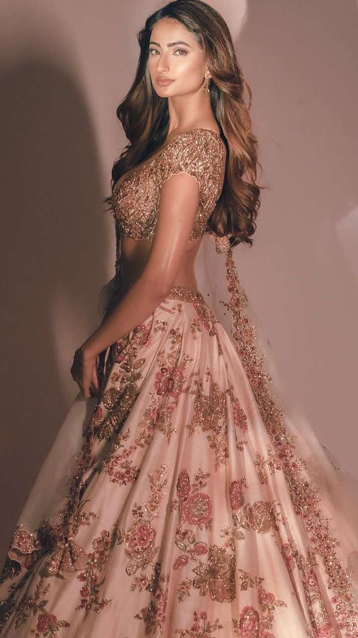 पलक का ये शिमरी लहंगा आप किसी भी वेडिंग फंक्शन में पहन सकती हैं।