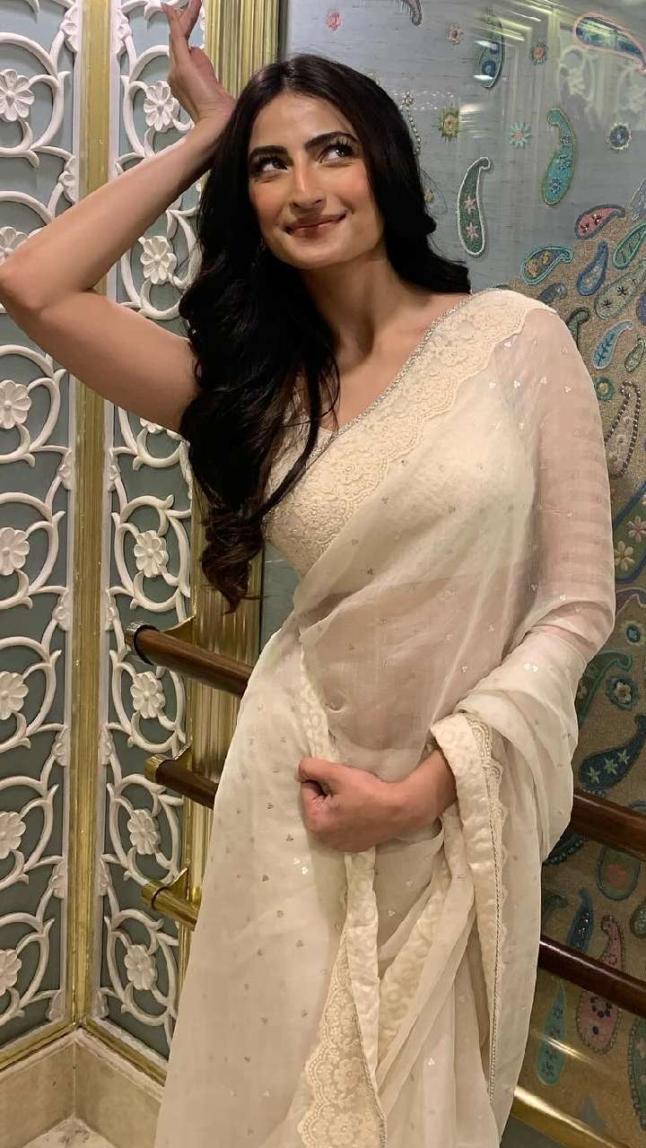 अगर आपका कर्वी फिगर है और महफिल में लाइमलाइट बटोरना है, तो पलक तिवारी की तरह इस साड़ी को स्टाइल कर सकती हैं। इसमें उन्होंने व्हाइट कलर की ट्रांसपेरेंट साड़ी पहनी है। इस साड़ी में वो डॉल लग रही हैं।