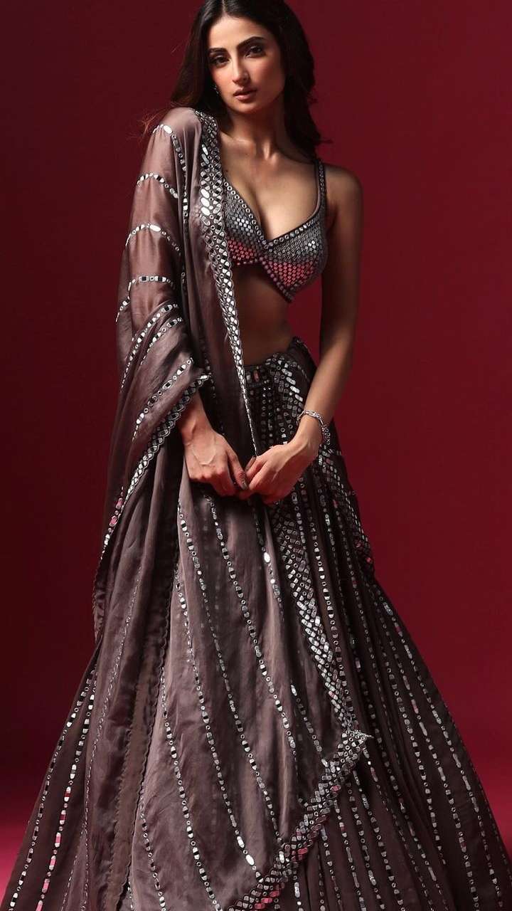 हाल में पलक ने अपना ये शिमरी ग्रे कलर लहंगा शेयर किया है। जिसमें डीवा कयामत ढहा रही हैं।