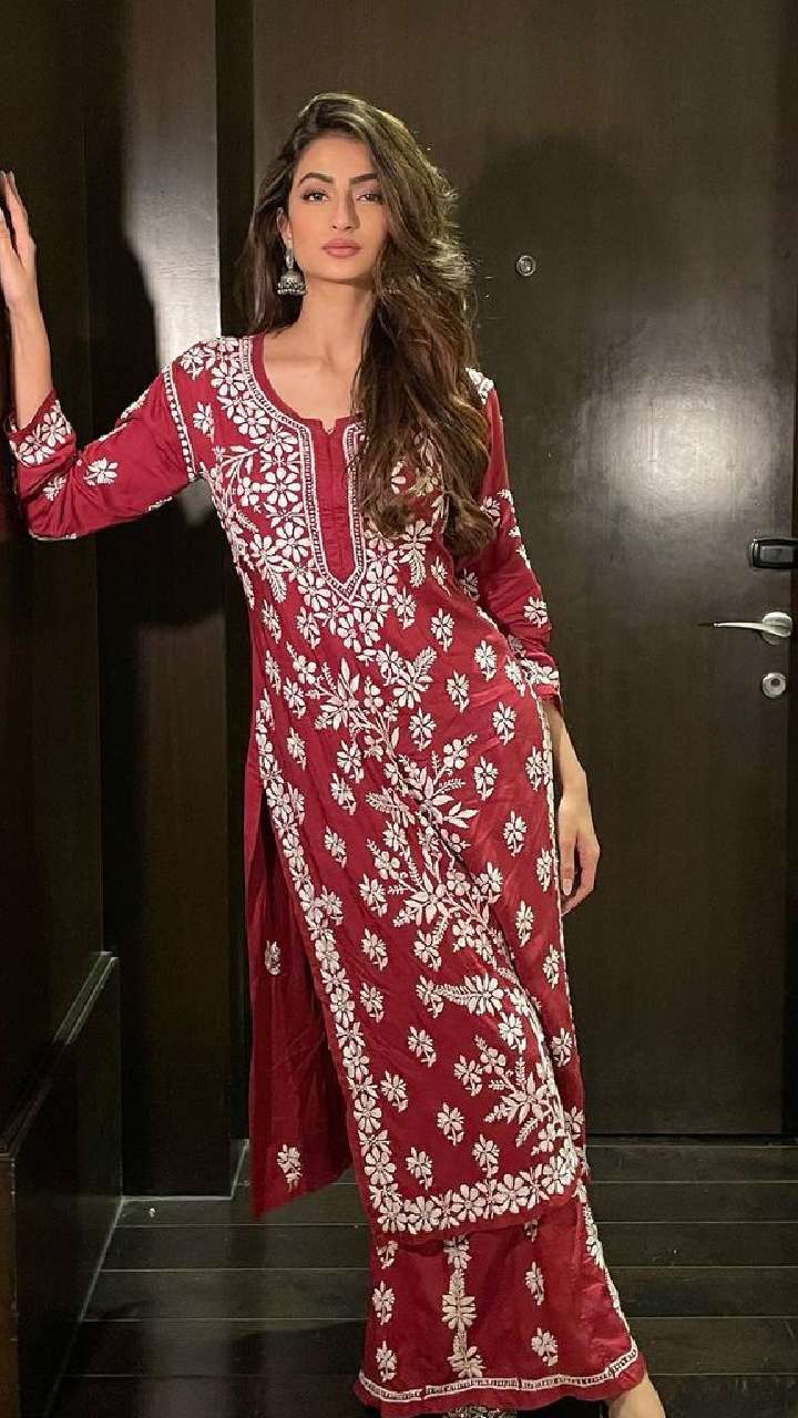 एक्ट्रेस का ये चिकनकारी शरारा सूट समर के लिए बेस्ट है।