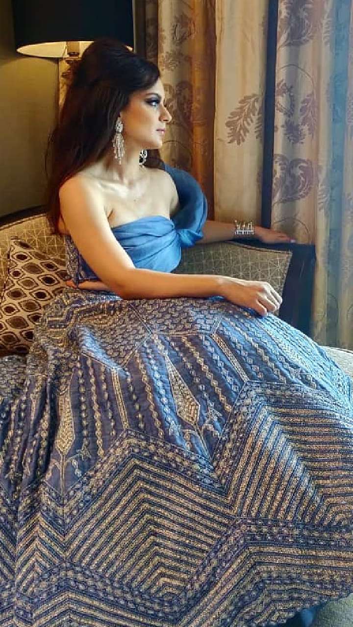 पर्पल कलर का ये कढ़ाई वर्क वाला लहंगा काफी ज्यादा शानदार लग रहा है। एक्ट्रेस का ये लहंगा खास फंक्शन में कैरी करें।